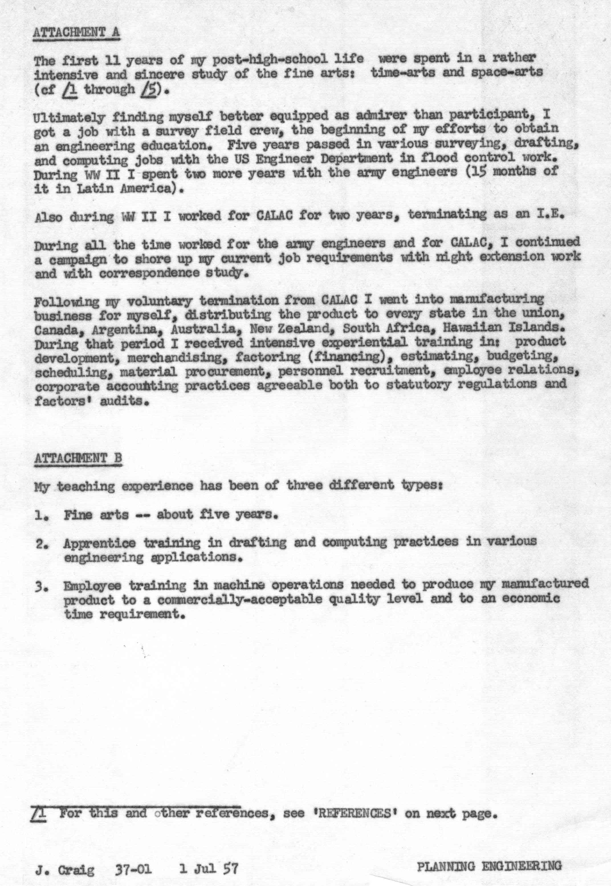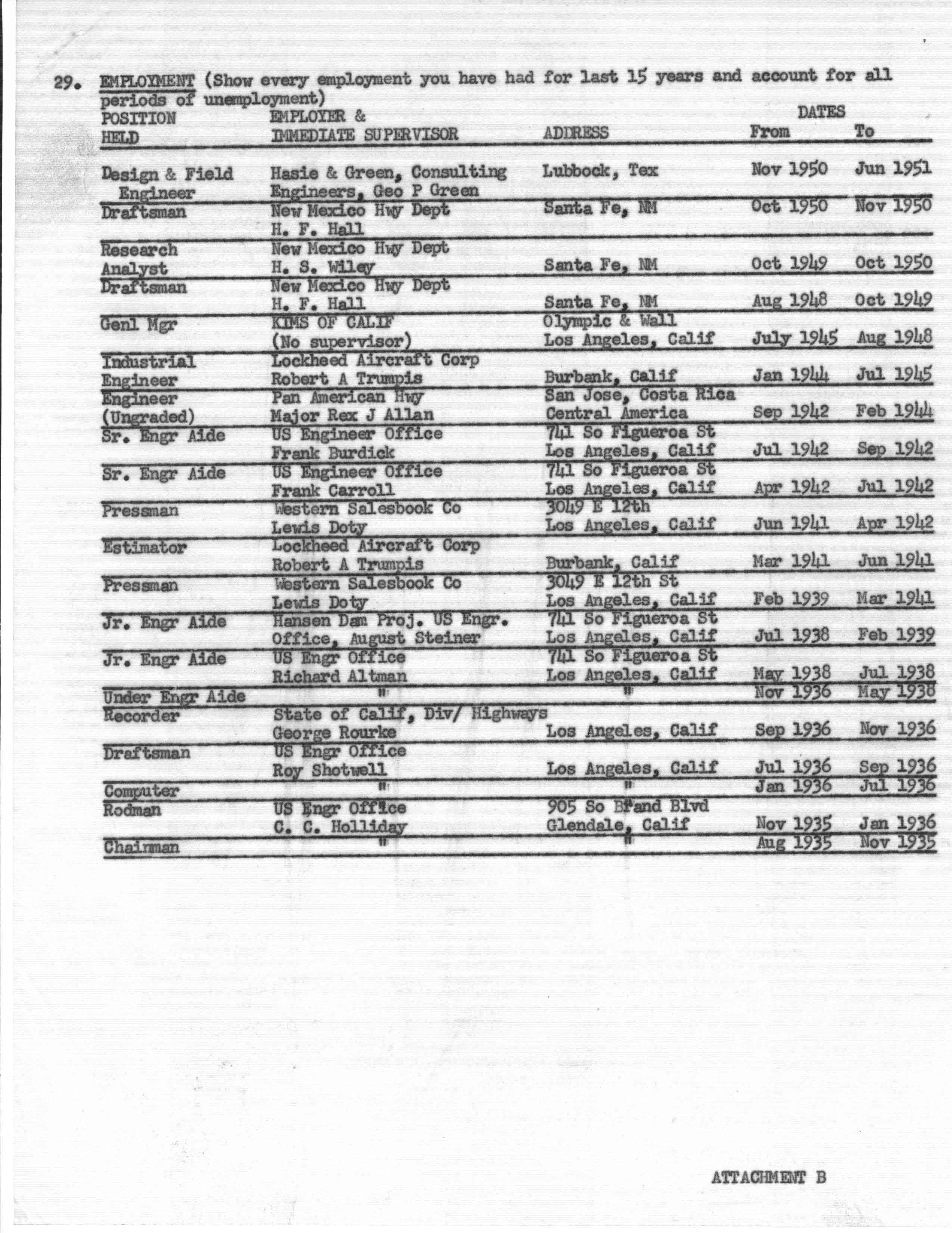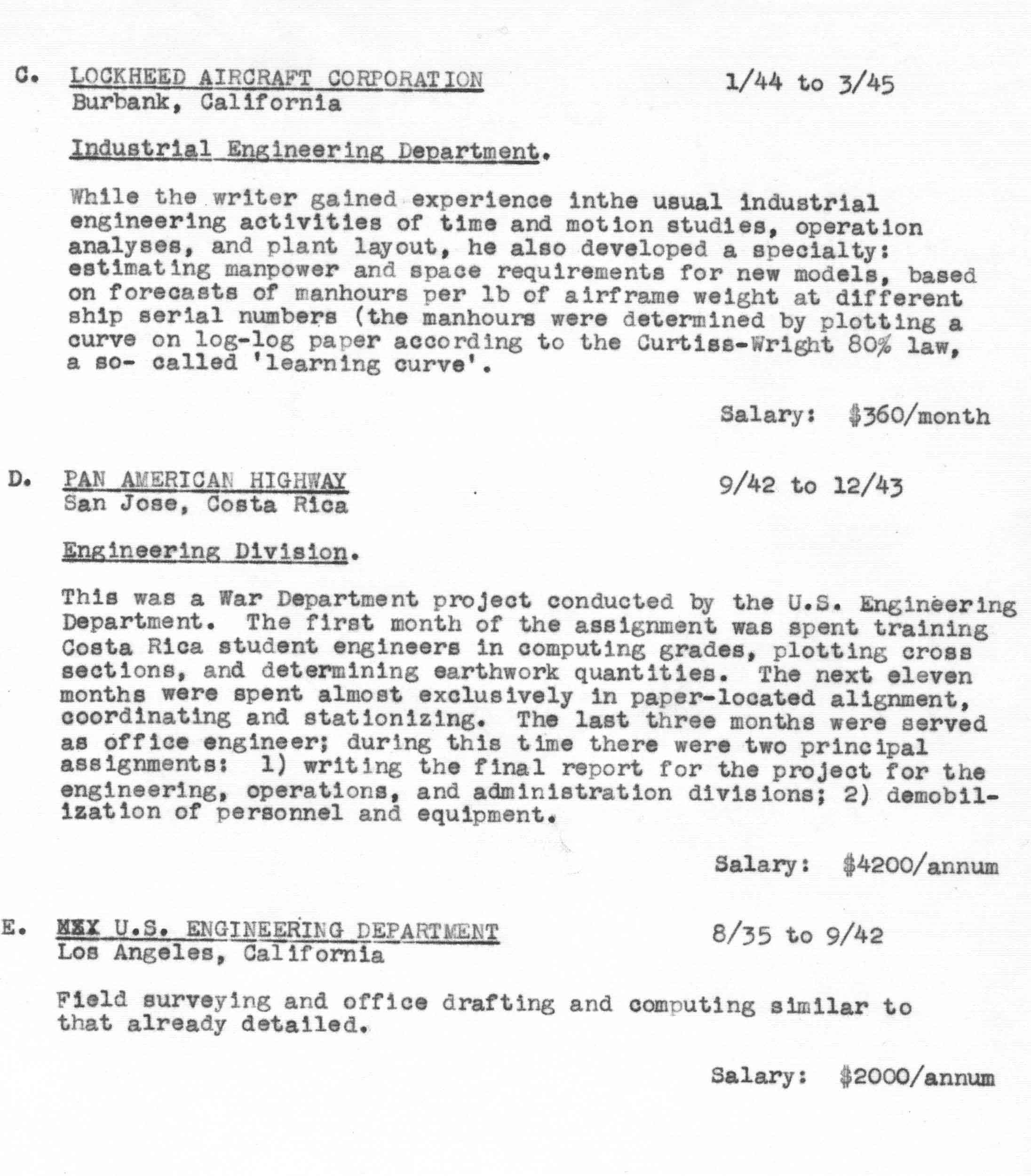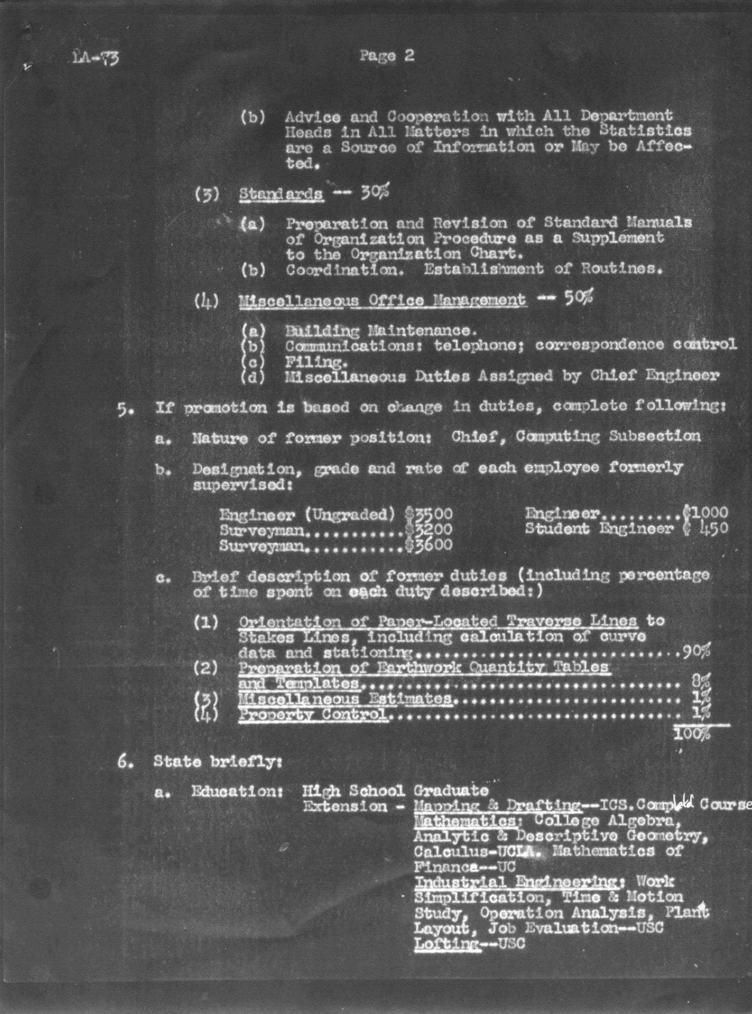 Jimmy was born James Craig Stumpf on May 13, 1907 in Uniontown, PA. It appears that his grandfather, John Rowe Stumpf had bought land in Lodi in 1907 with the intention of moving out here to grow grapes, but never did. In 1914, Jimmy’s immediate family of three -- himself, his mother Rachel Louise (Babinger) Stumpf, and his father Craig Edgar Stumpf – moved from Uniontown, PA to Lodi, CA, and then in August of 1923 made a second move to Glendale, CA, where Jimmy spent his senior year at Glendale High School. The moves were apparently prompted by Craig Edgar’s asthma, who had gone to Glendale earlier (in February of 1923) to look at the weather before moving the family there between Jimmy’s junior and senior years in high school. Unfortunately, Craig Edgar died in 1924, only a year after their move to Glendale, forcing Jimmy to withdraw his application to Stanford University. Jimmy lived with and supported his mother Rachel in the Glendale area for the next 14 years (until 1937), during several of which he delivered newspapers on his Indian motorcycle. Sometime between 1936 and 1937, Jimmy married Tedi (Henrietta Halliwell Strashun) and in January of 1937 they bought a house at 357 Mavis Drive in Glendale, CA. A good summary of Jimmy's educational experience is found under Jimmy Security Questionnaire below, and a good summary of his work experience is found under Work History and Work Experience.