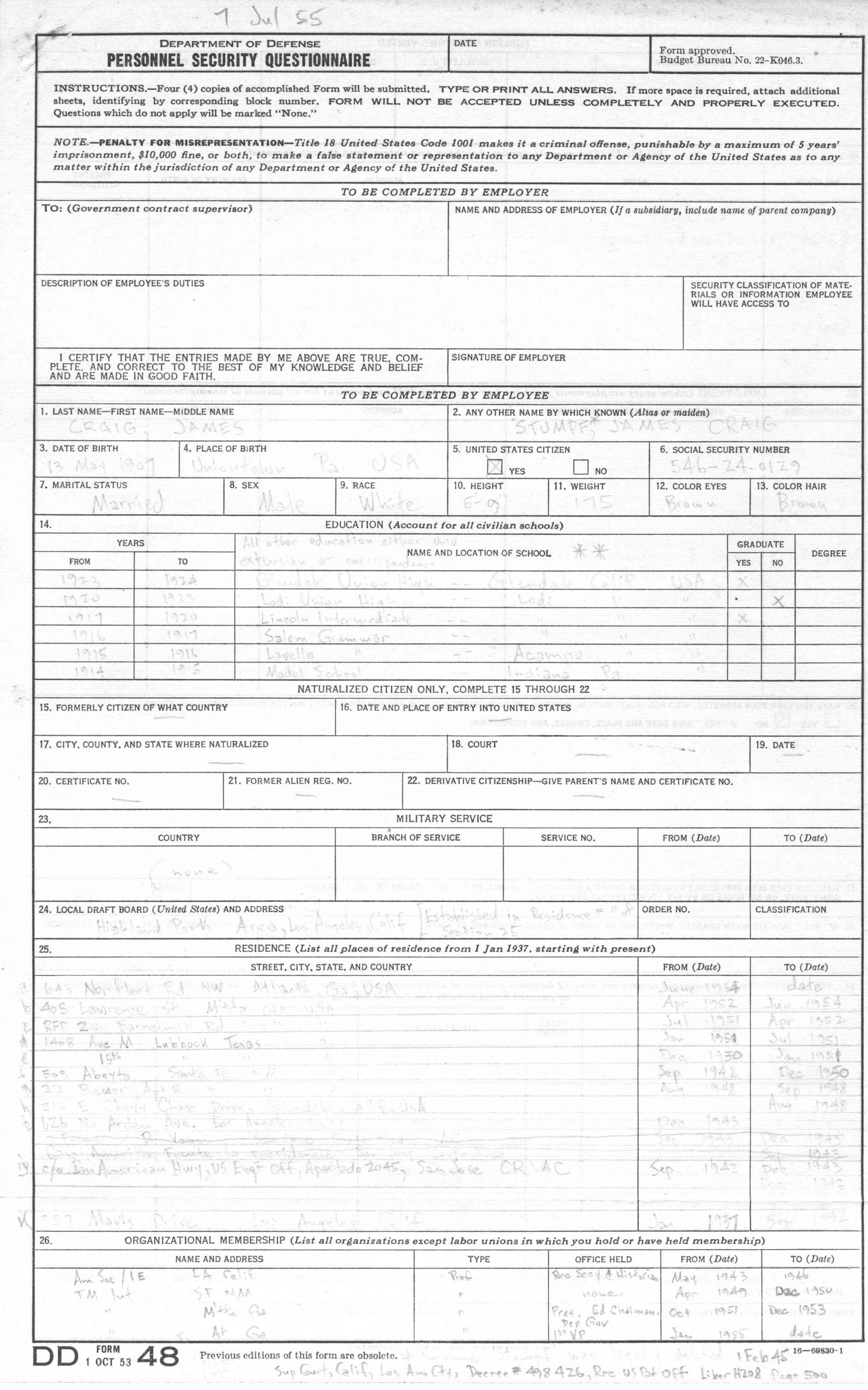 07/07/1955 -- Jimmy Security Questionnaire    1