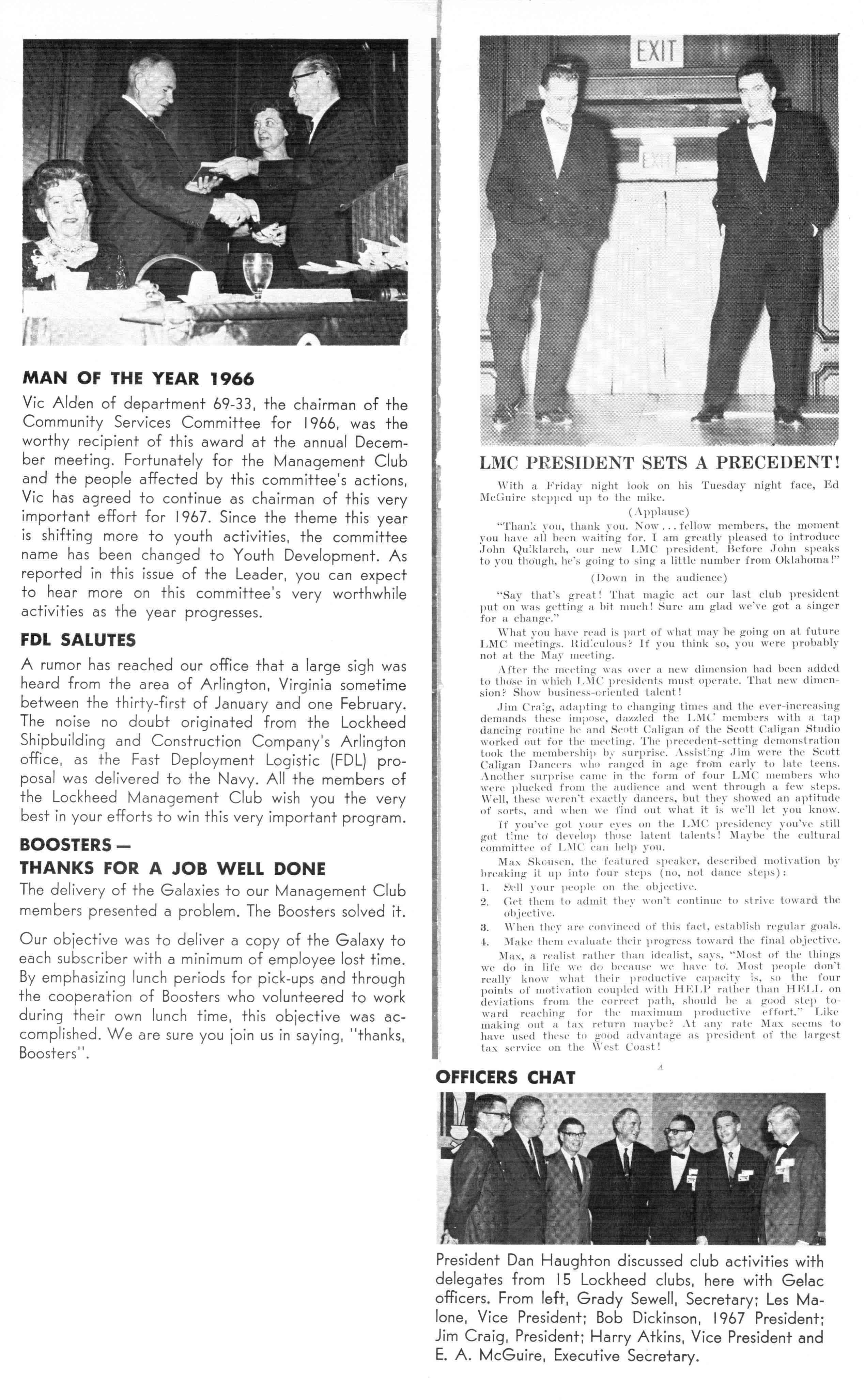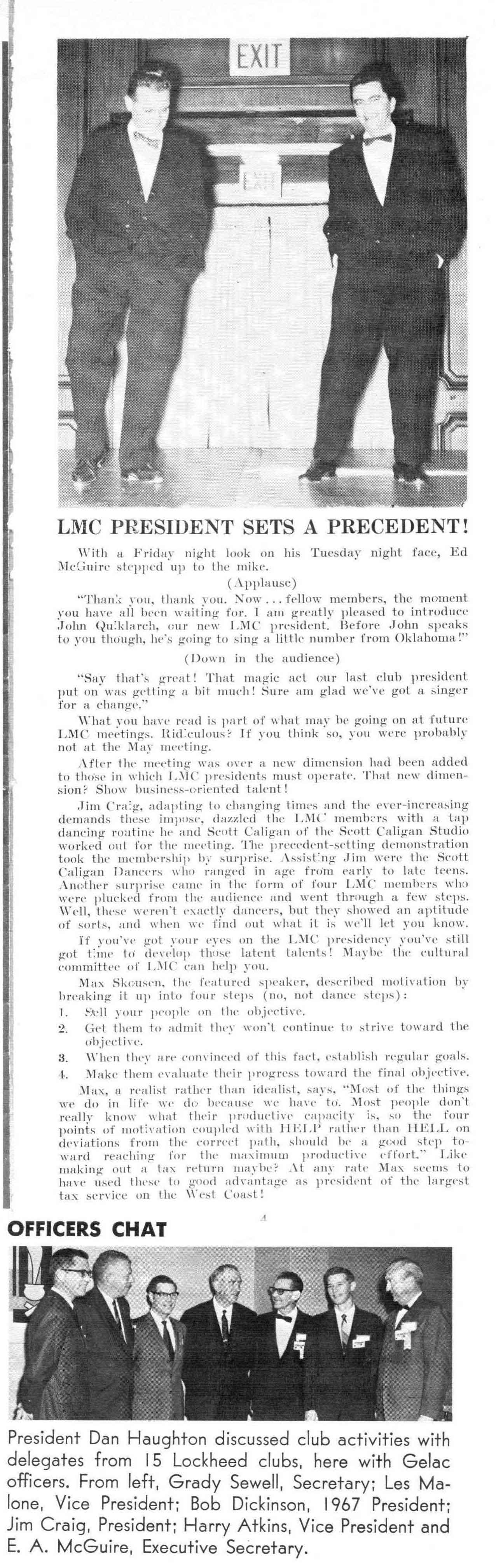 xx/xx/1965 Jimmy Announced President of Lockheed Management Club for 1966