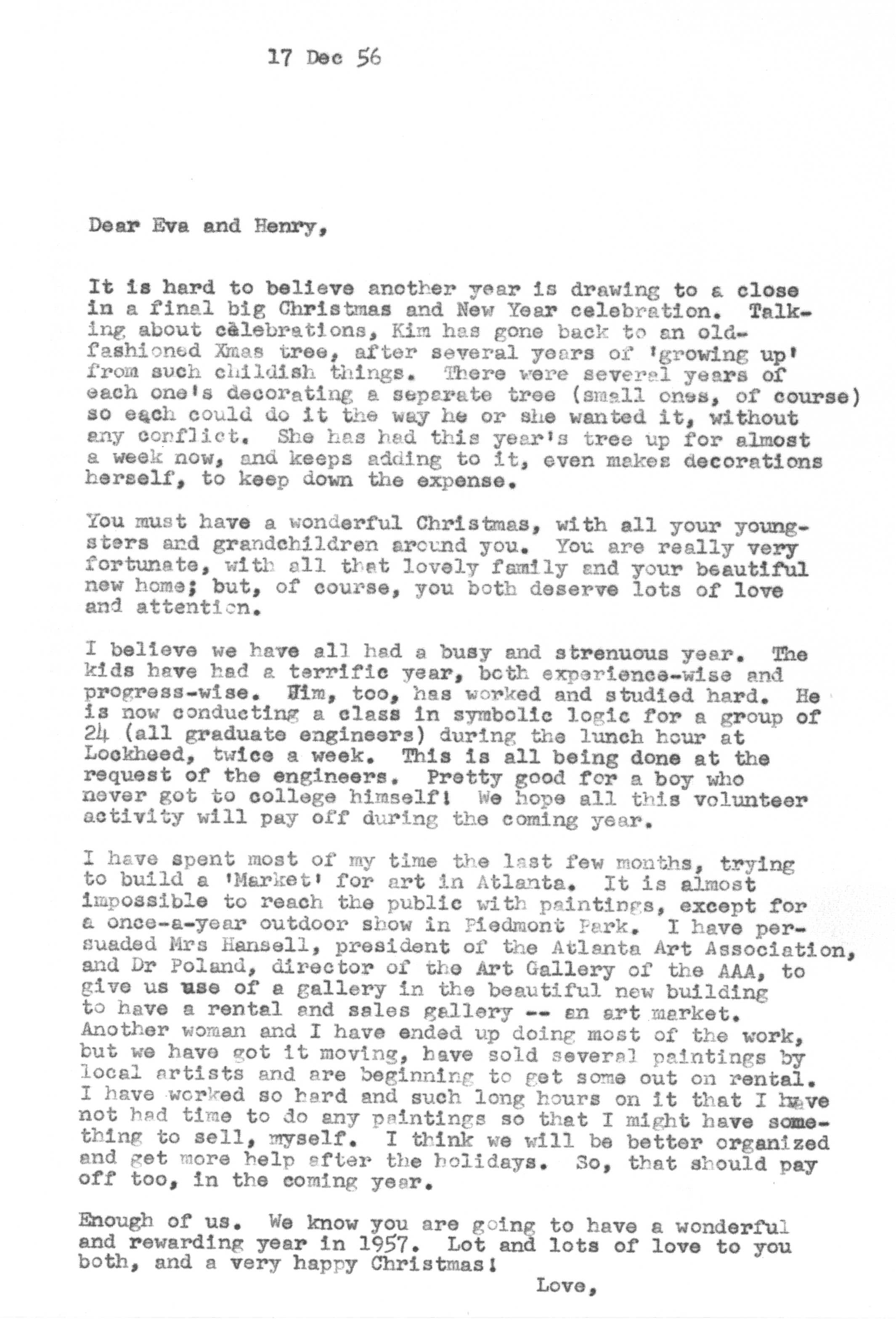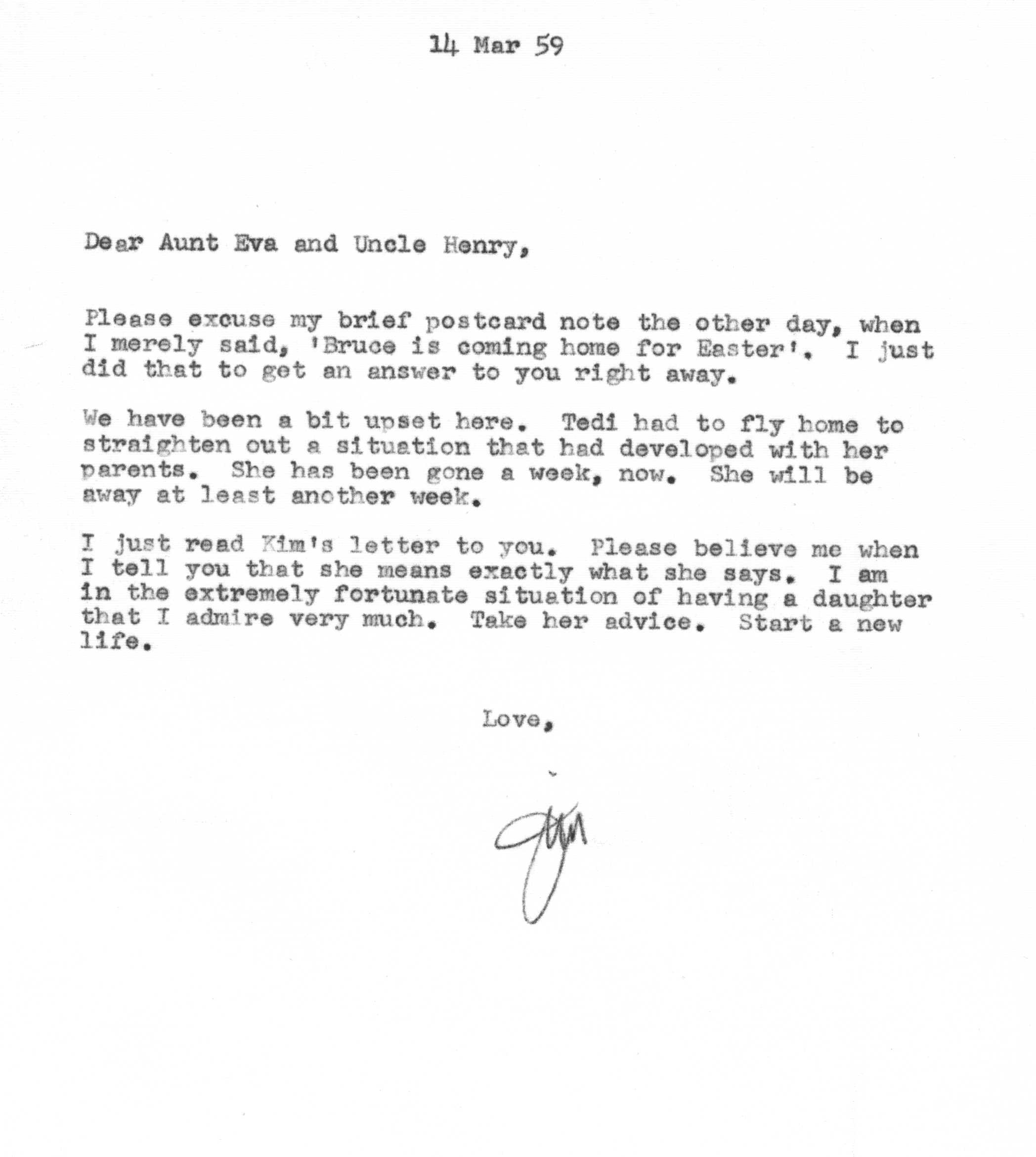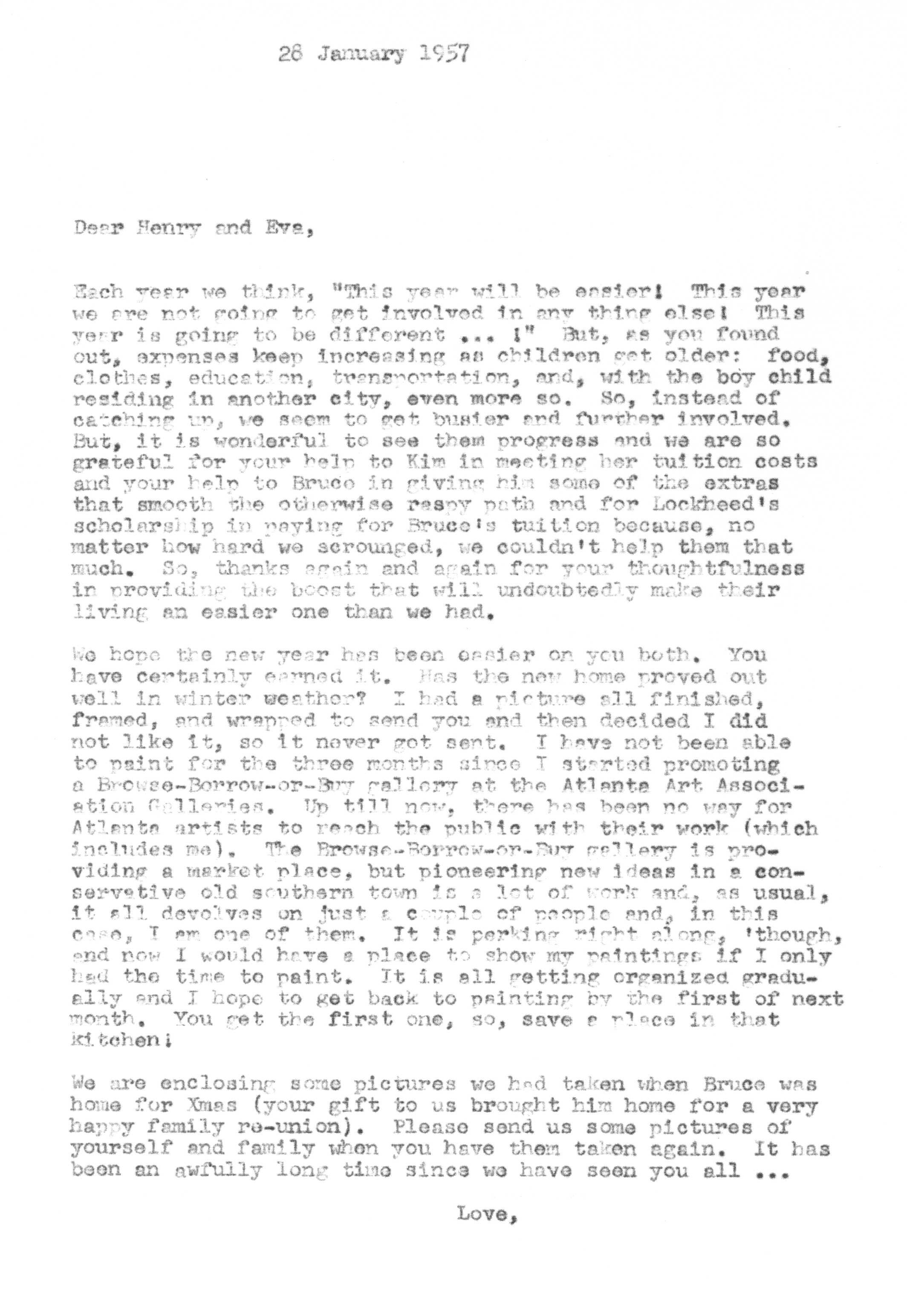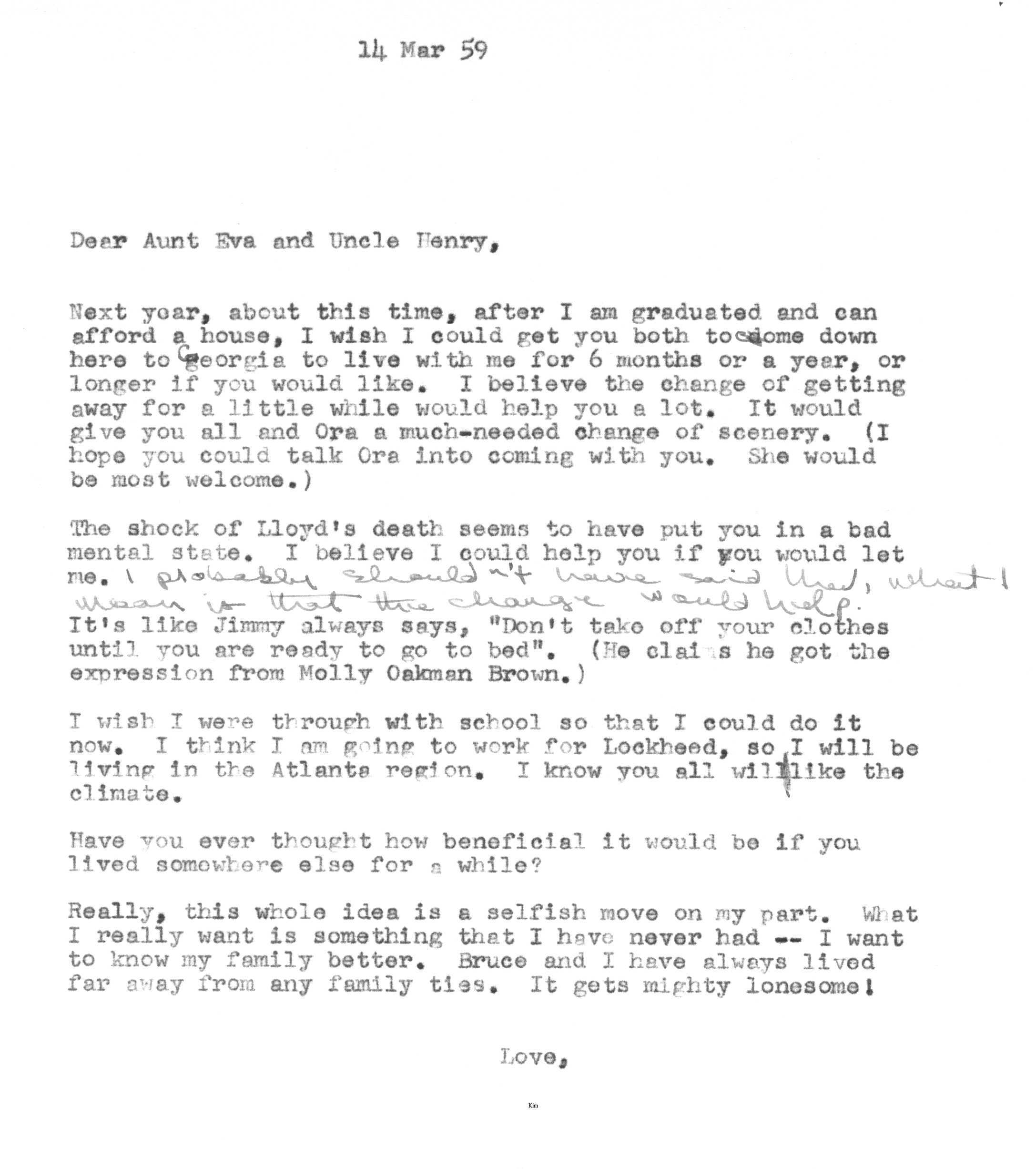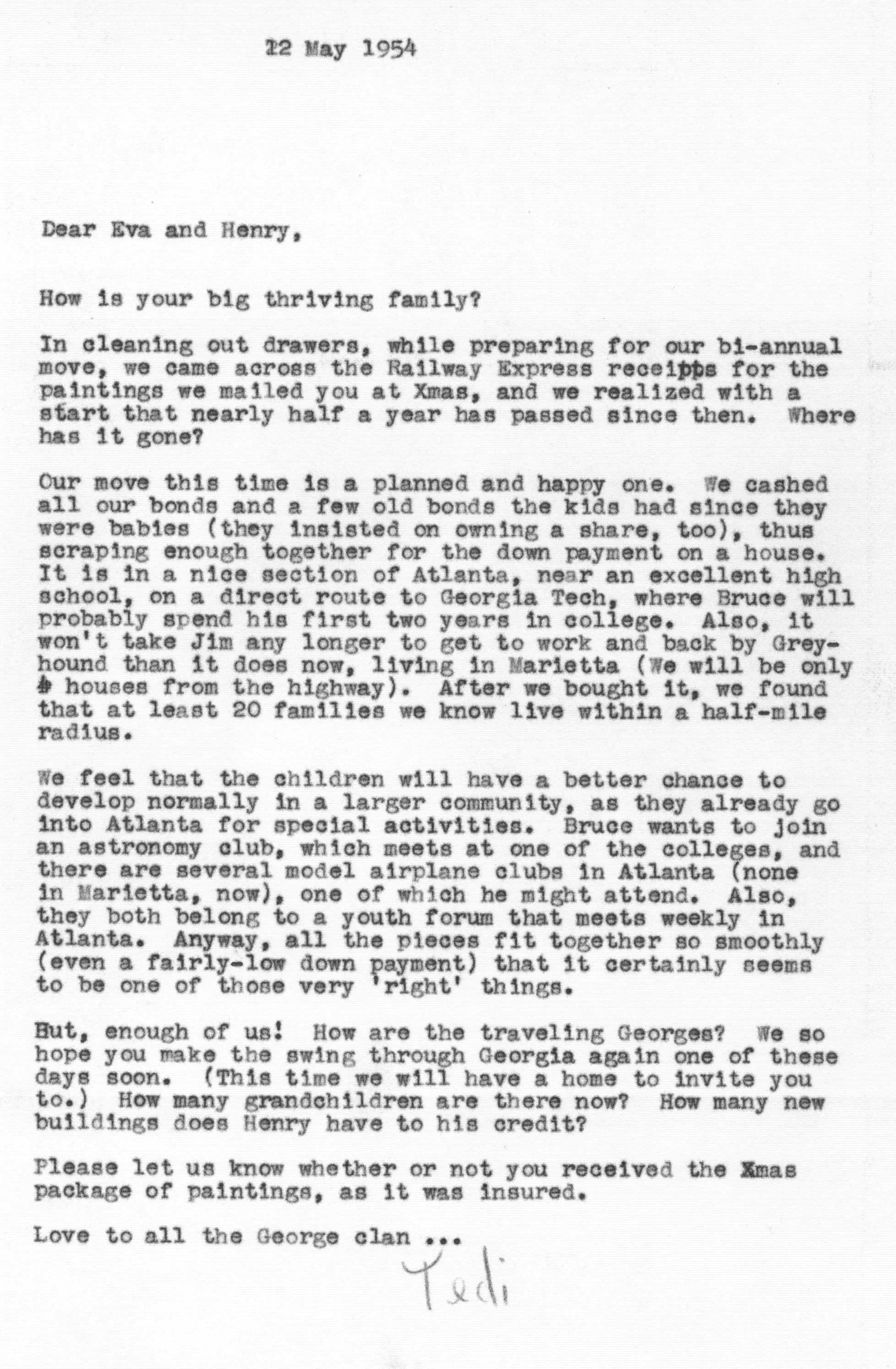 The sequence of Tedi and Jimmy's moves around the country is roughly as follows -- Los Angeles after their marriage in 1936 to 1948, Santa Fe from 1948 to 1950, Lubbock from 1950 to 1951, Marietta from 1951 to 1954 and Atlanta from 1954 on. Jimmy spent a portion of the years 1942 and 1943 working as a surveyor on the Pan American Highway in Costa Rica, Nicaragua, Guatemala, and Panama as an employee of the Army Corps of Engineers.