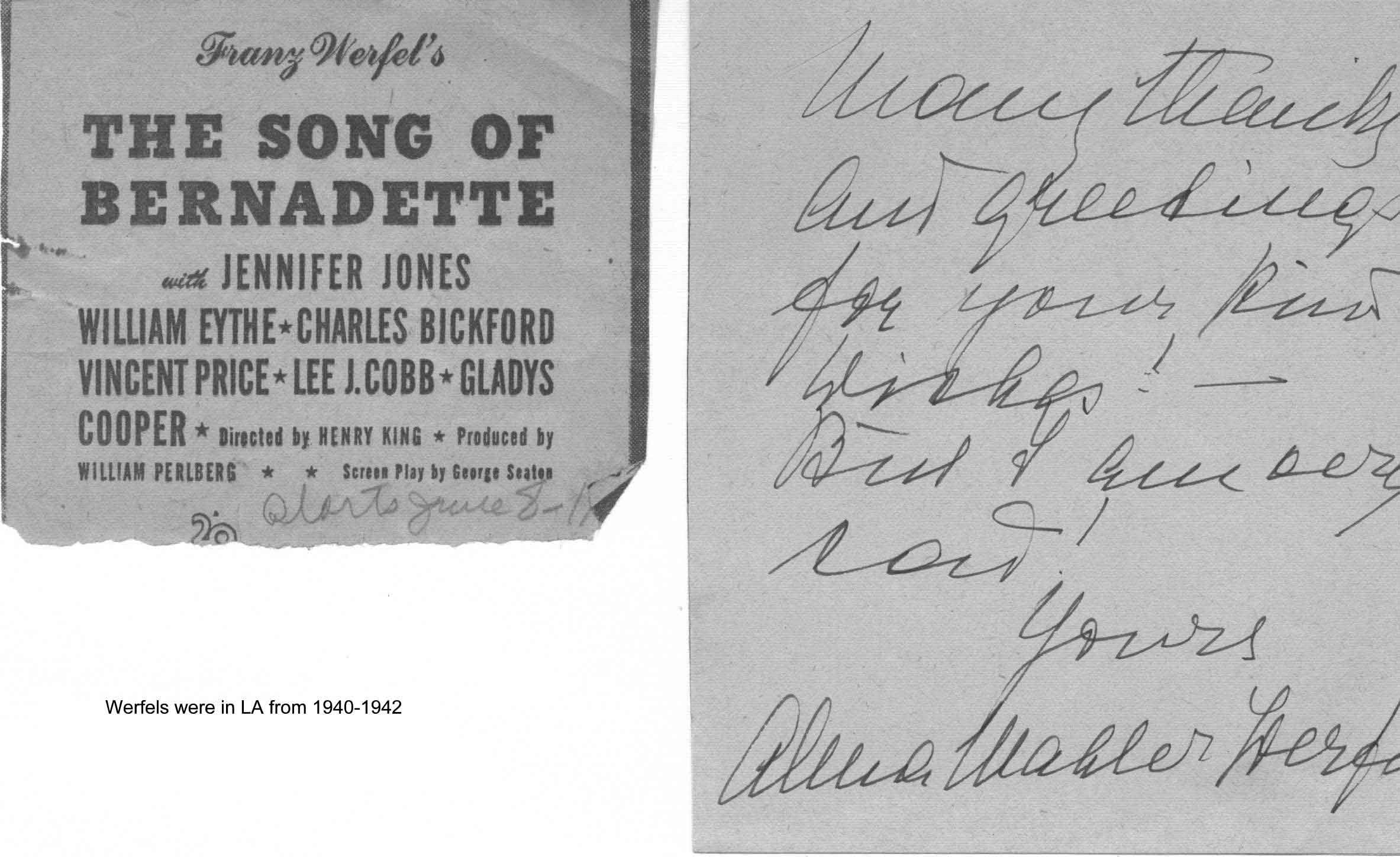 xx/xx/1940 -- Note from Alma Mahler Werfel