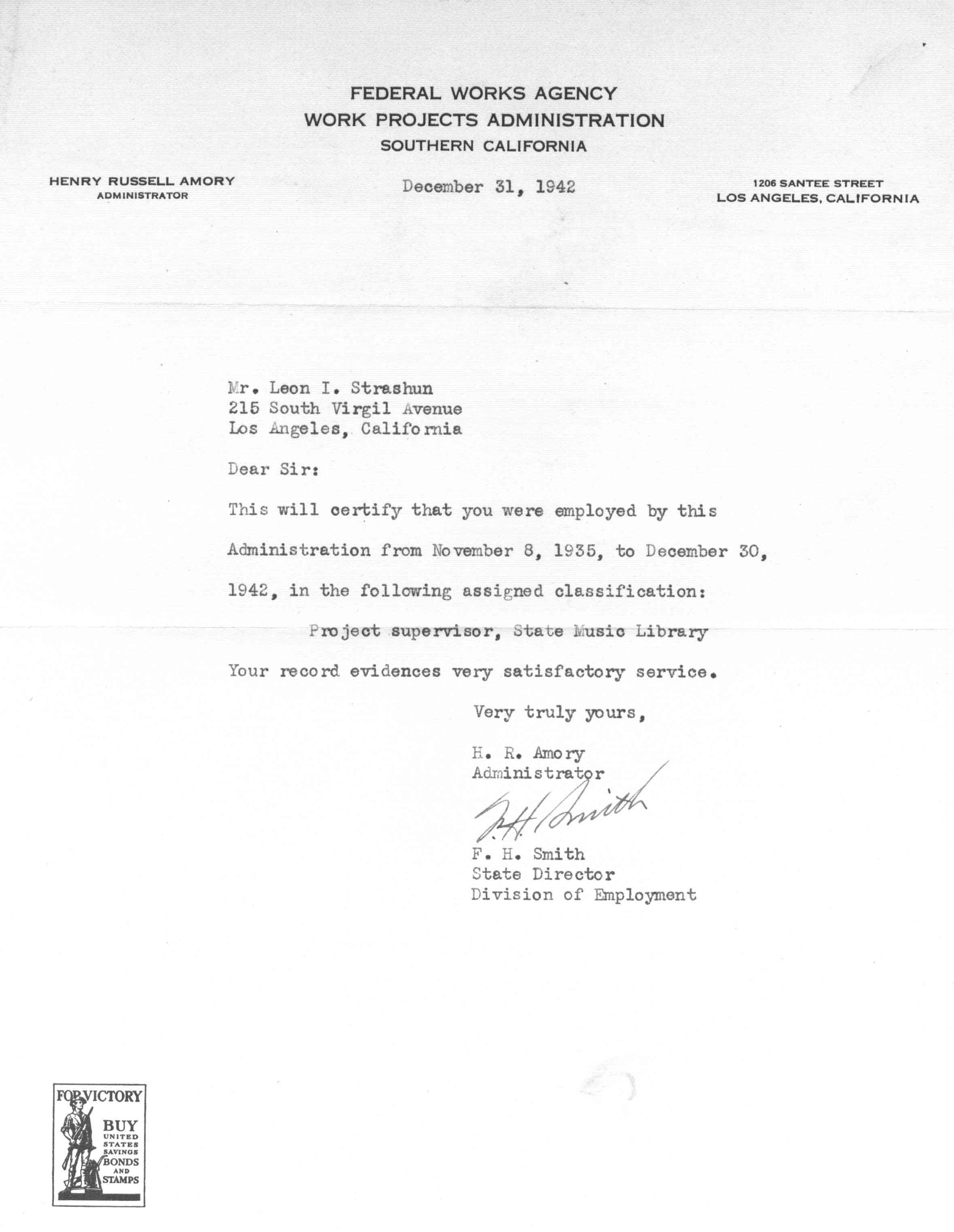 12/31/1942 -- Letter from H. R. Amory at WPA