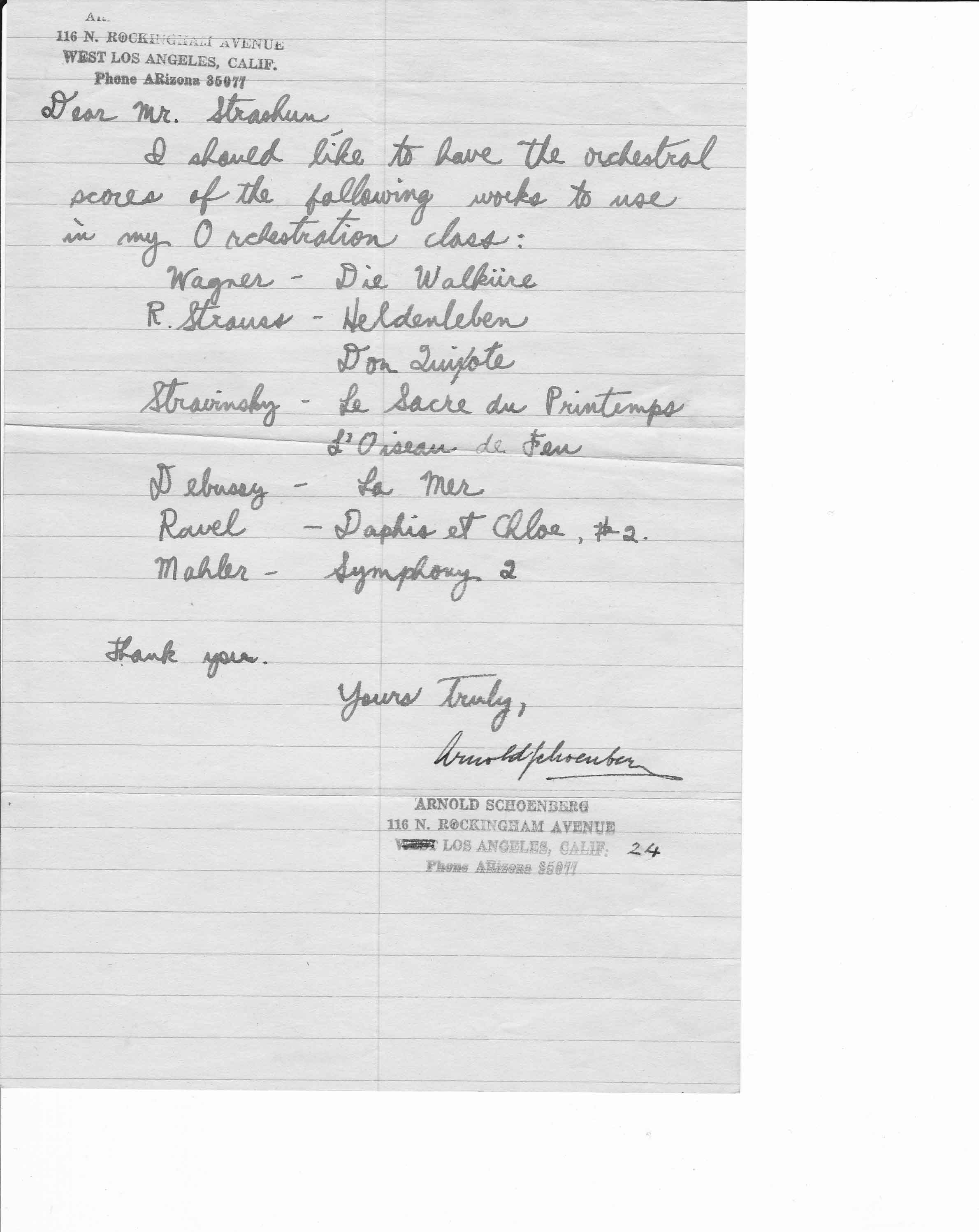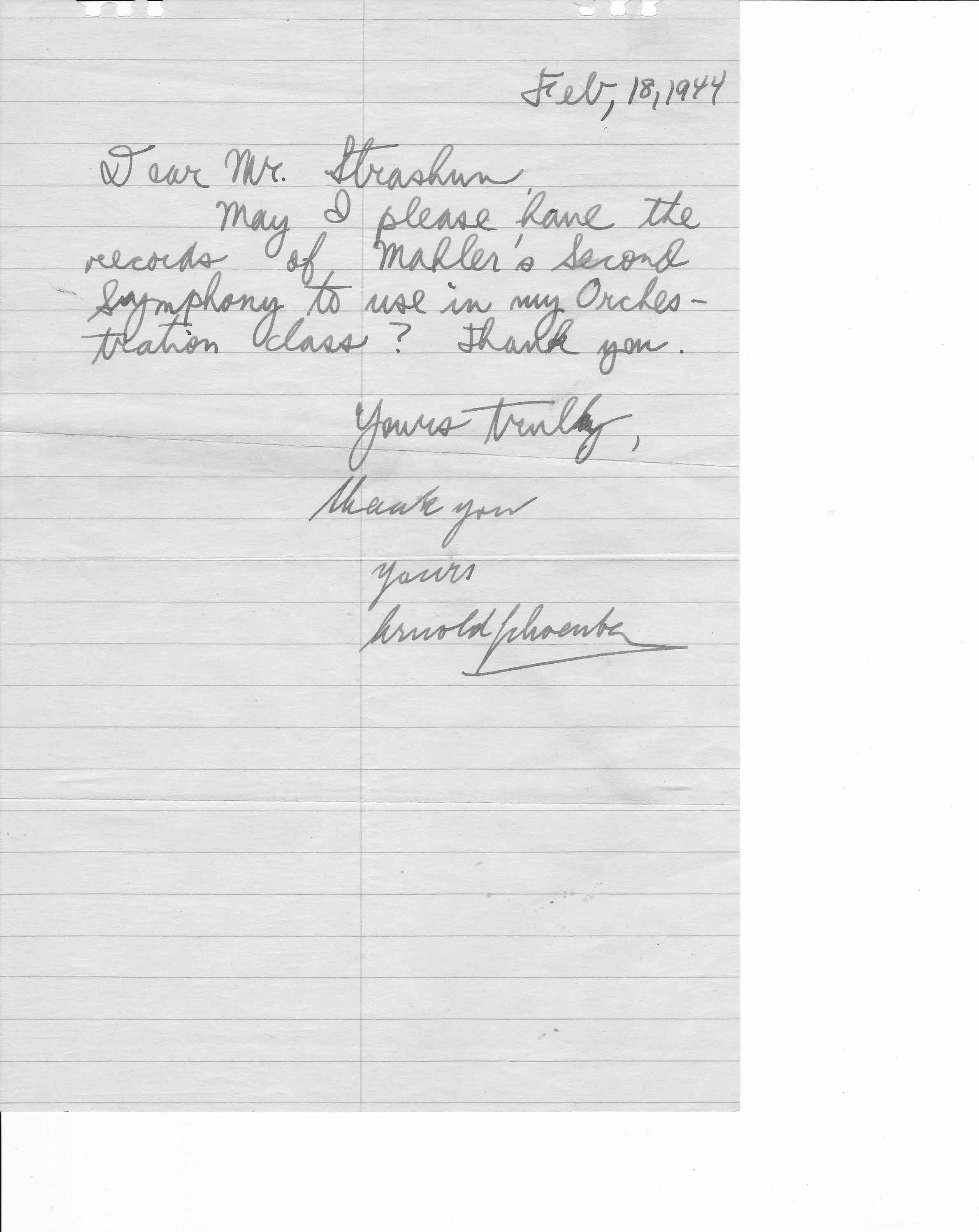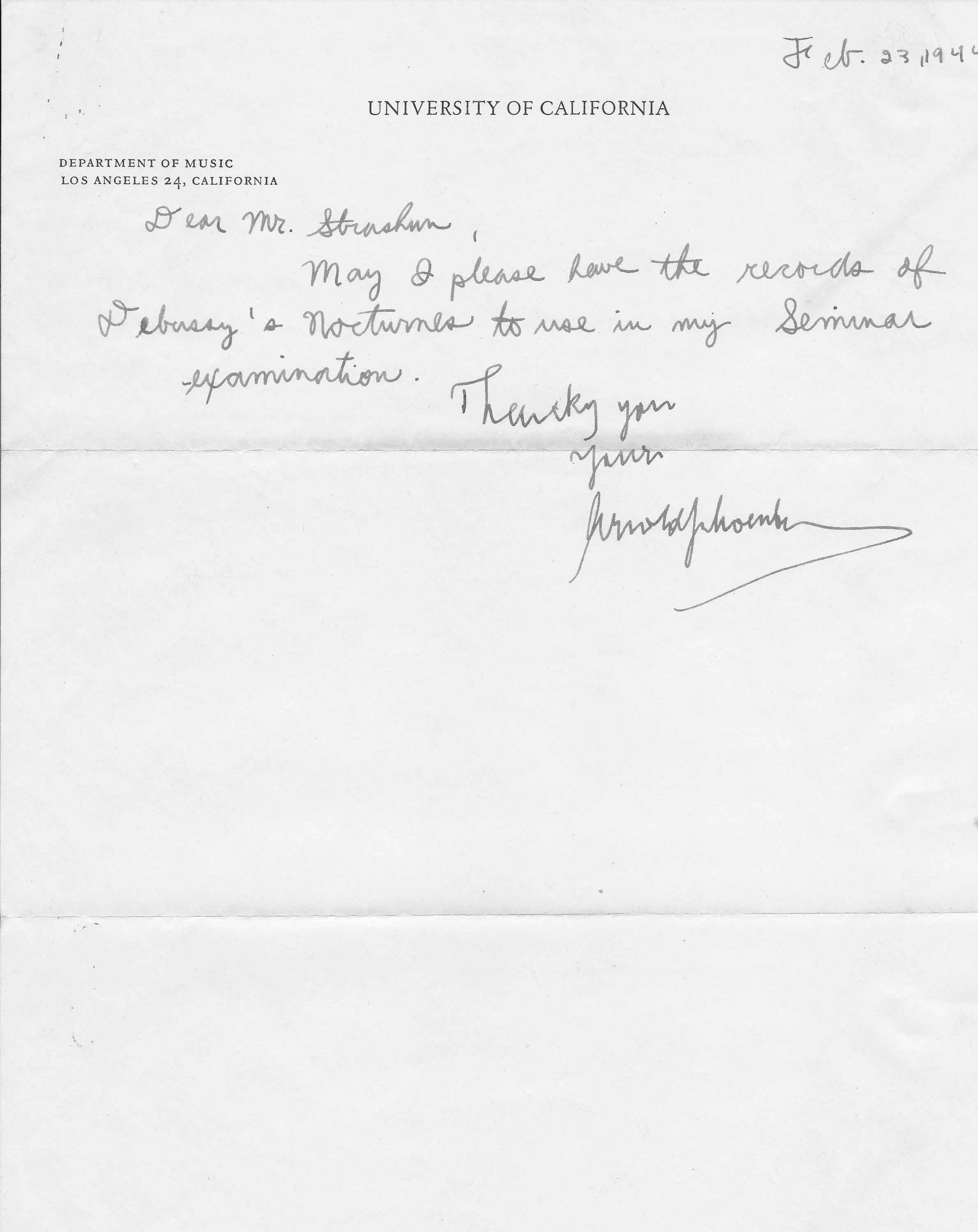 Letters from Arnold Schoenberg    xx/xx/1944