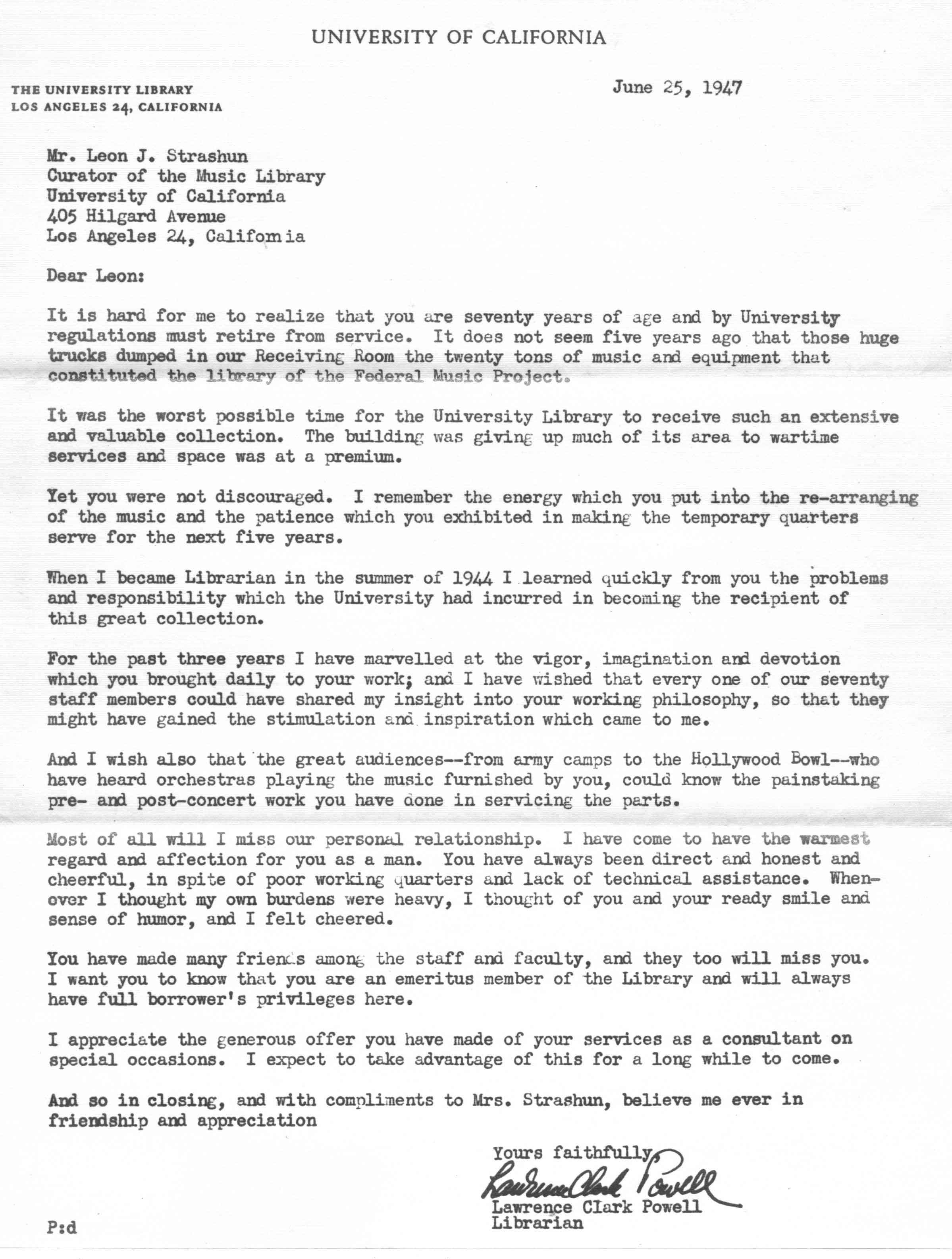 Letters from L. C. Powell at UCLA    06/25/1947