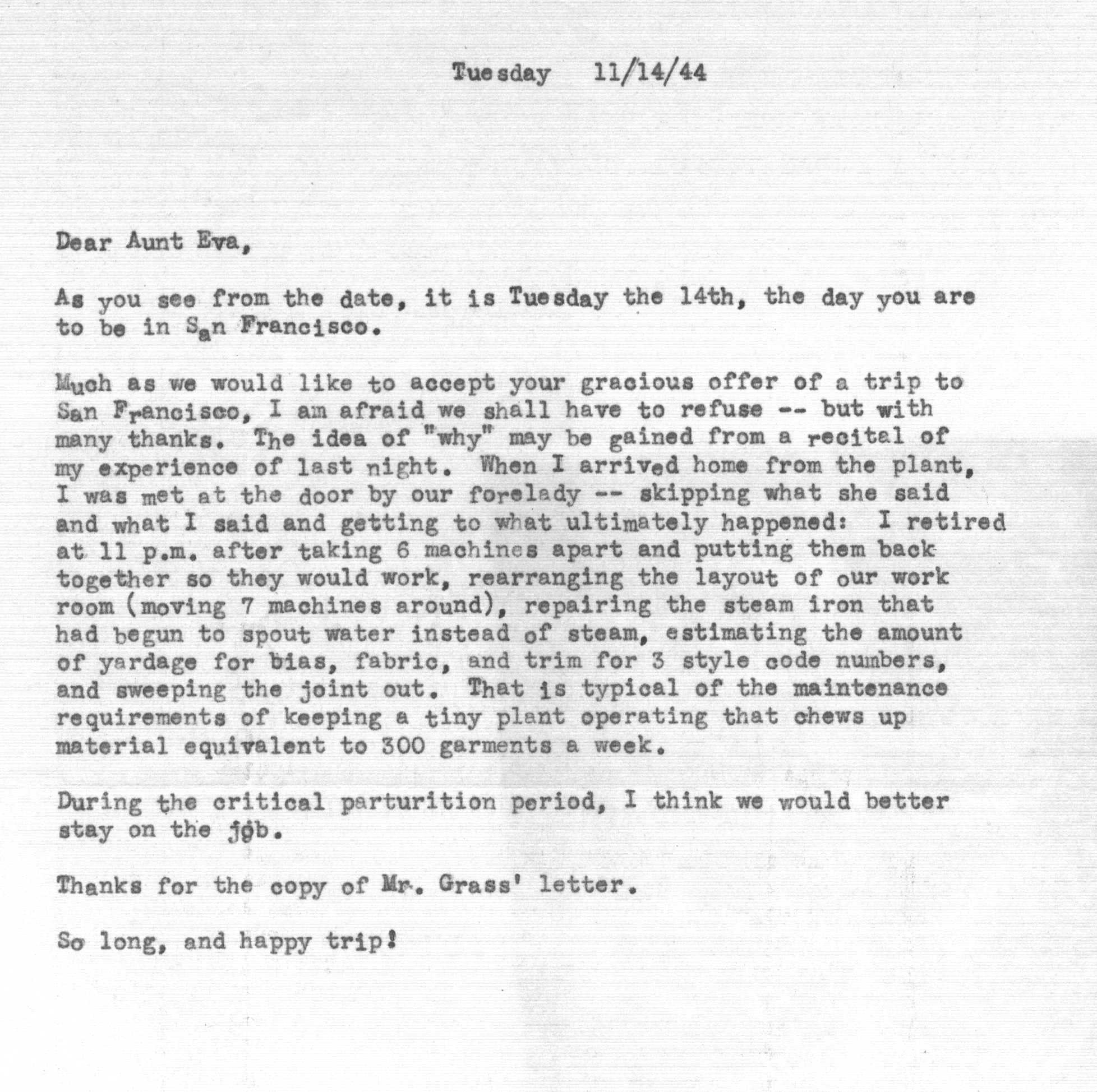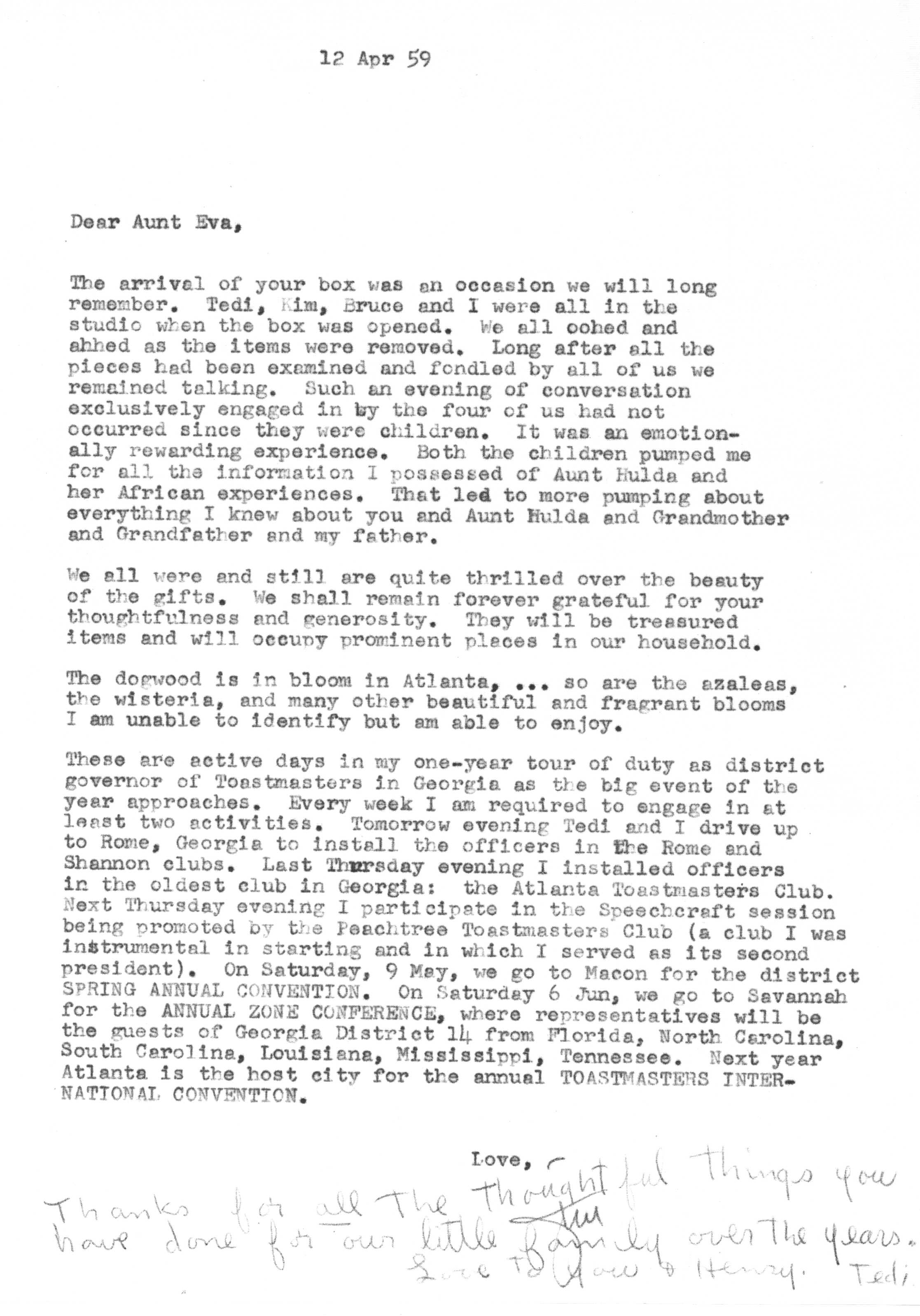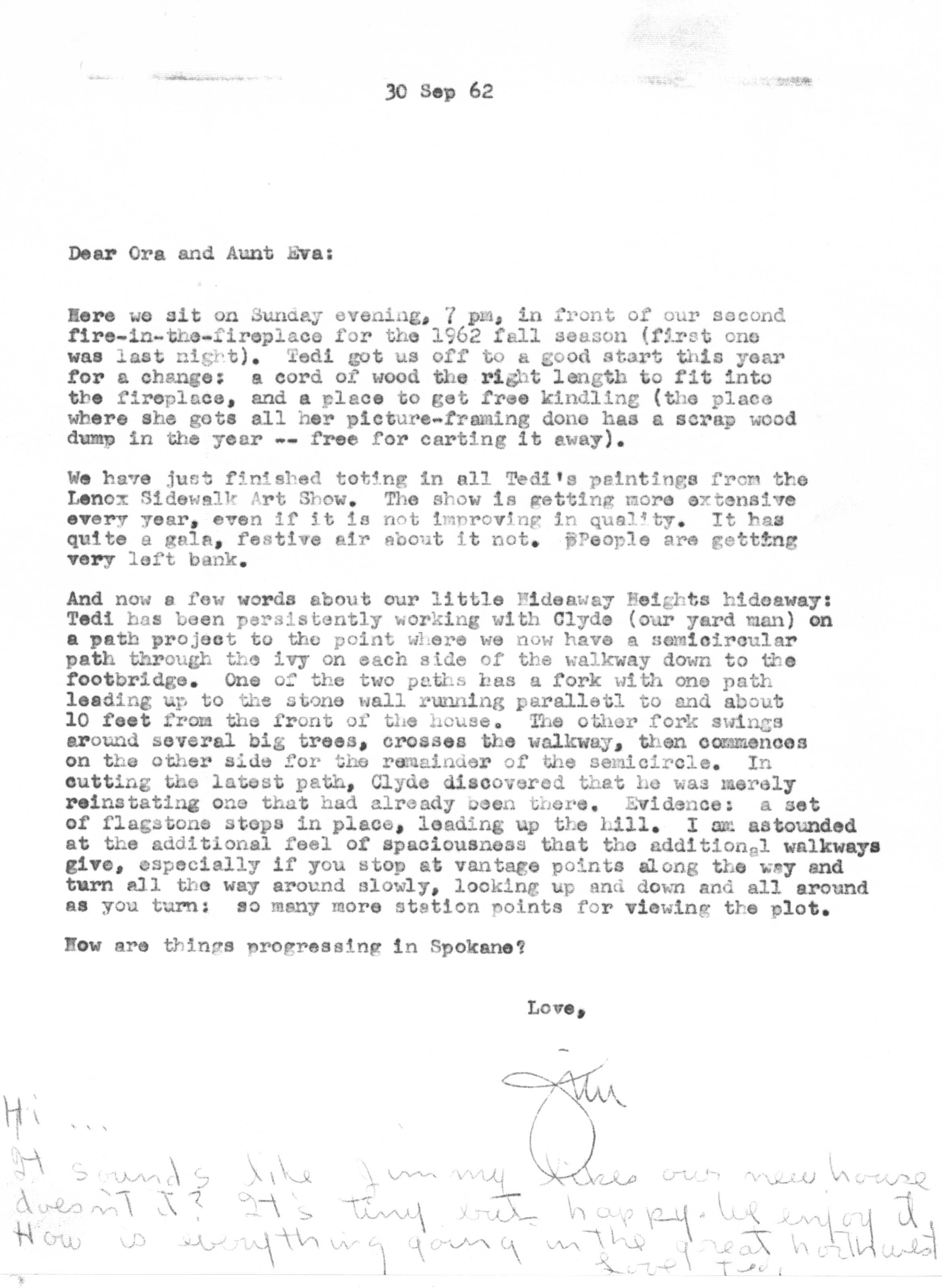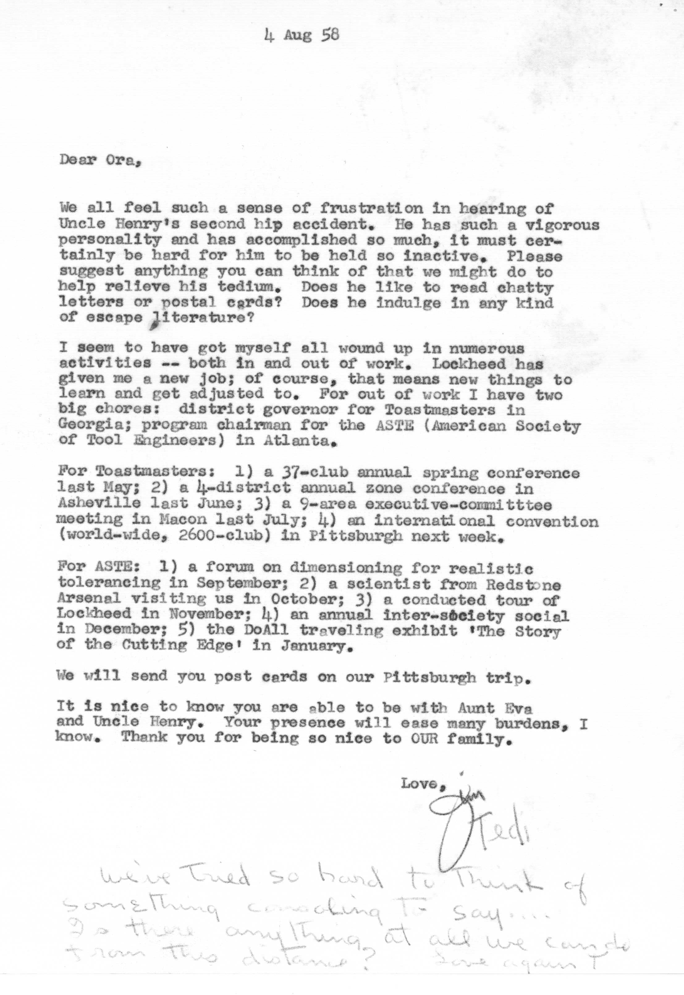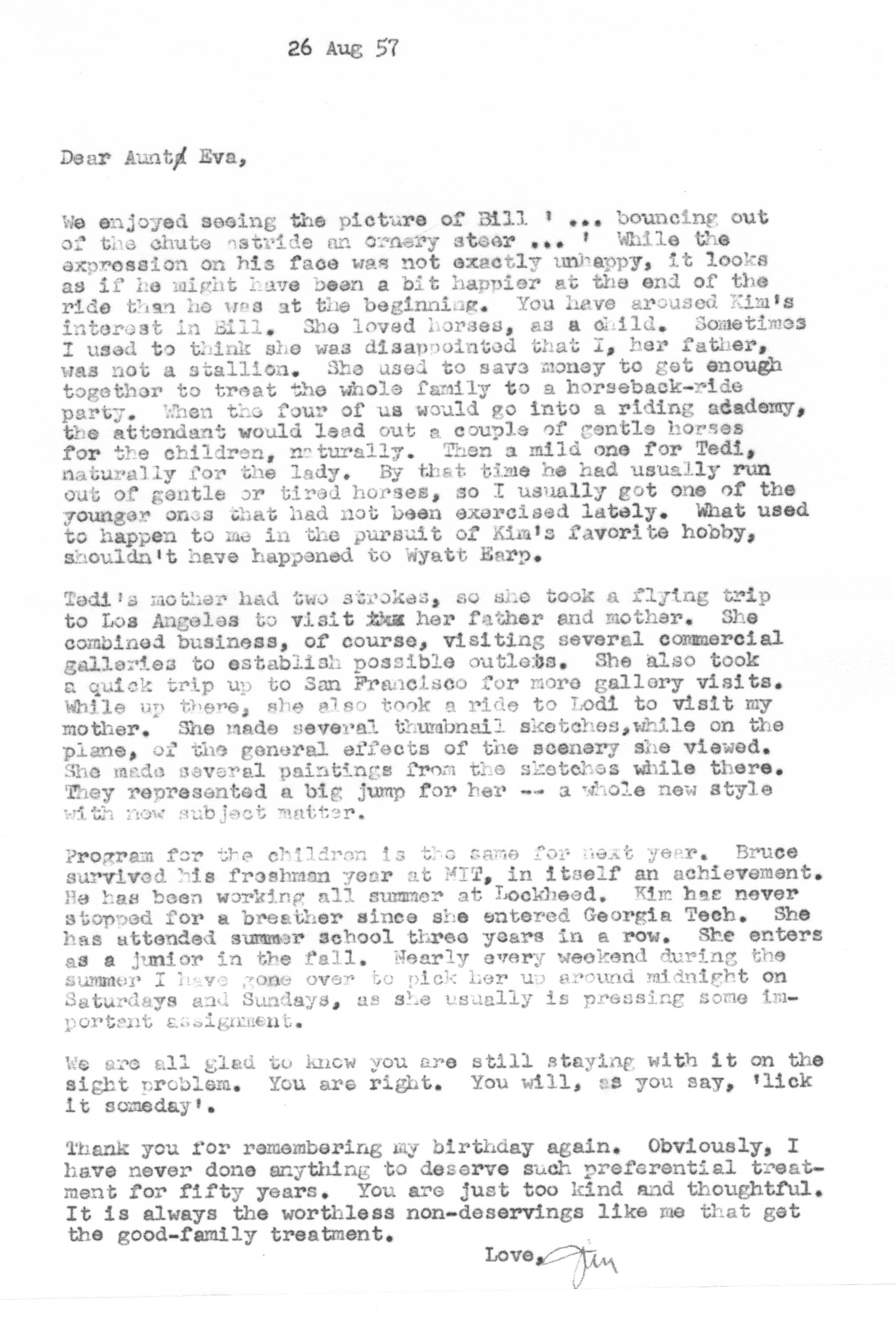 The sequence of Tedi and Jimmy's moves around the country is roughly as follows -- Los Angeles after their marriage in 1936 to 1948, Santa Fe from 1948 to 1950, Lubbock from 1950 to 1951, Marietta from 1951 to 1954 and Atlanta from 1954 on. Jimmy spent a portion of the years 1942 and 1943 working as a surveyor on the Pan American Highway in Costa Rica, Nicaragua, Guatemala, and Panama as an employee of the Army Corps of Engineers.