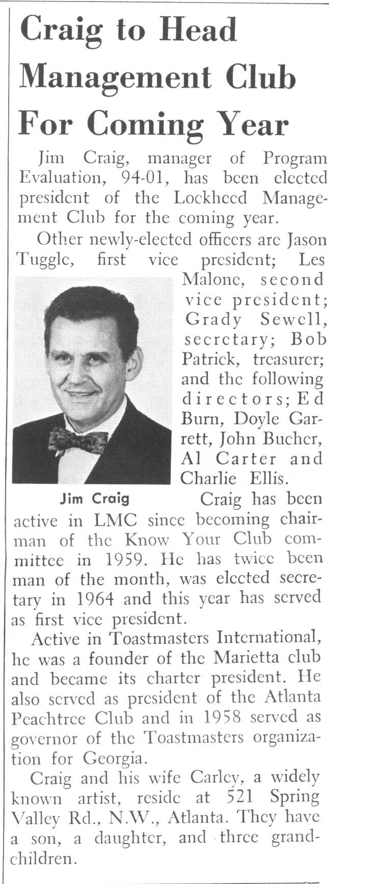 xx/xx/1965 Jimmy Announced President of Lockheed Management Club for 1966