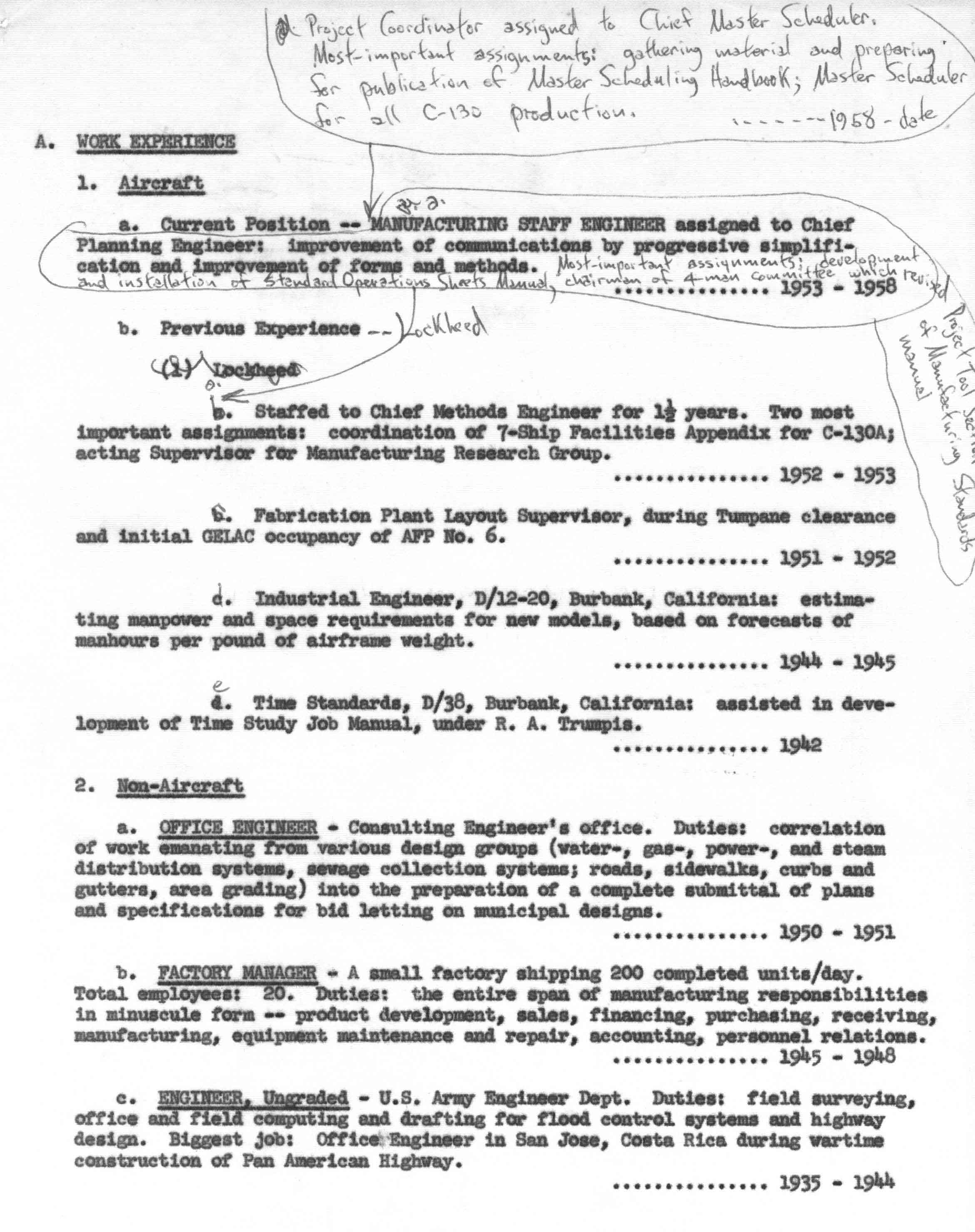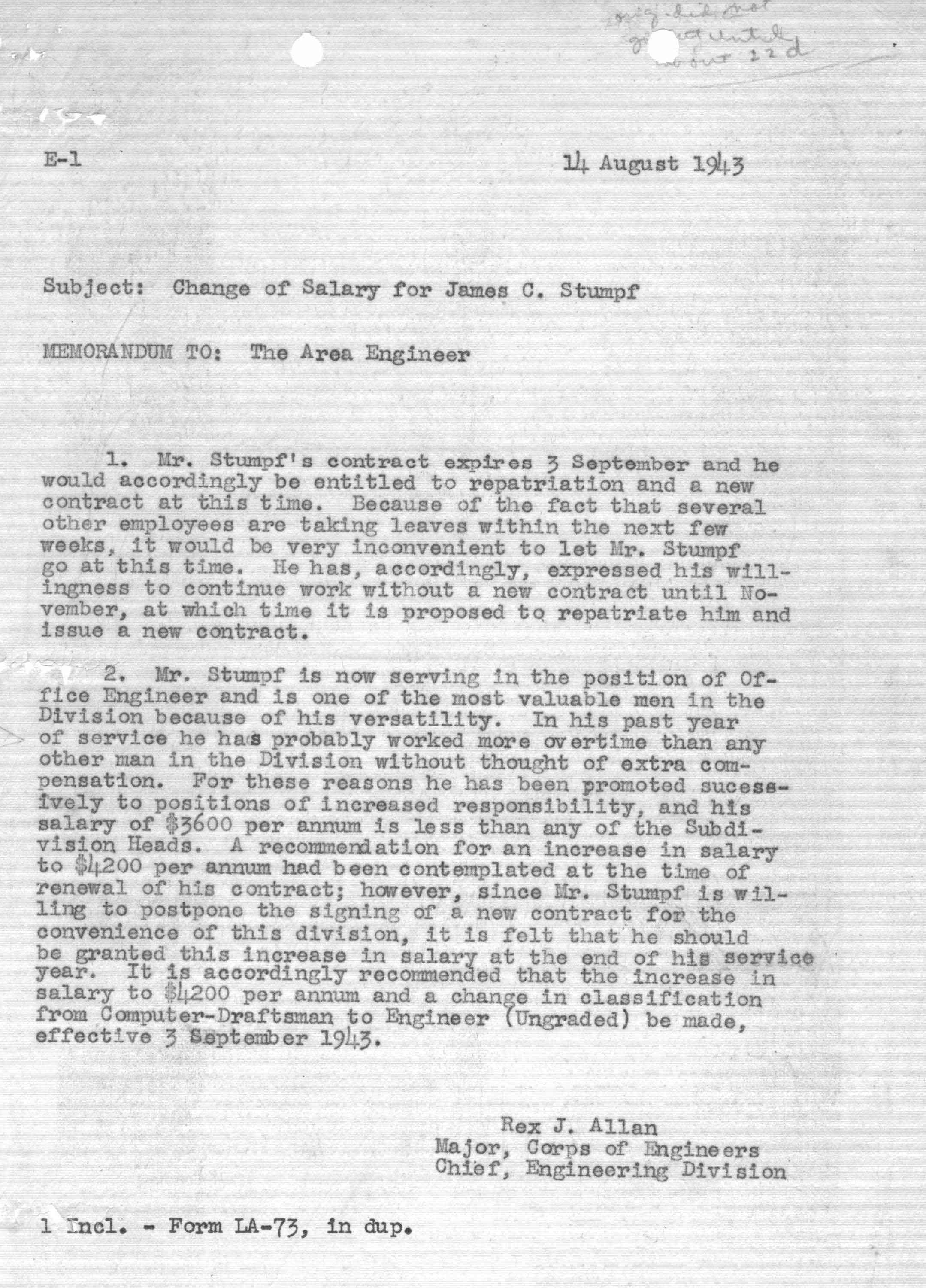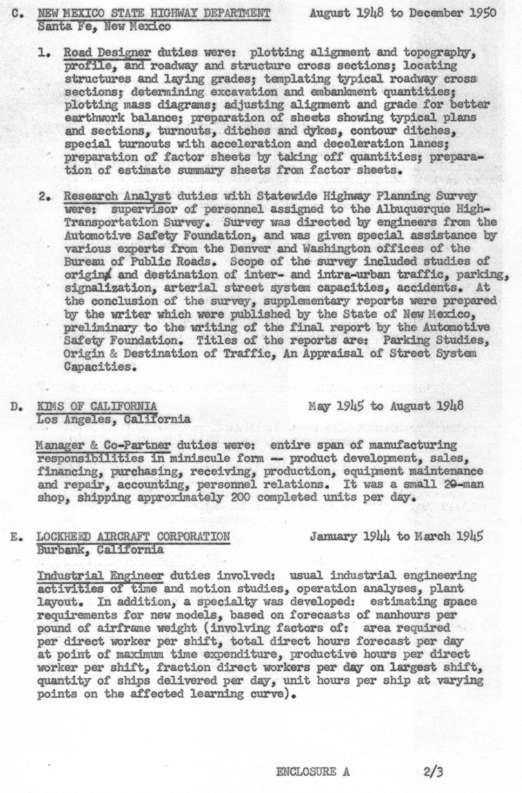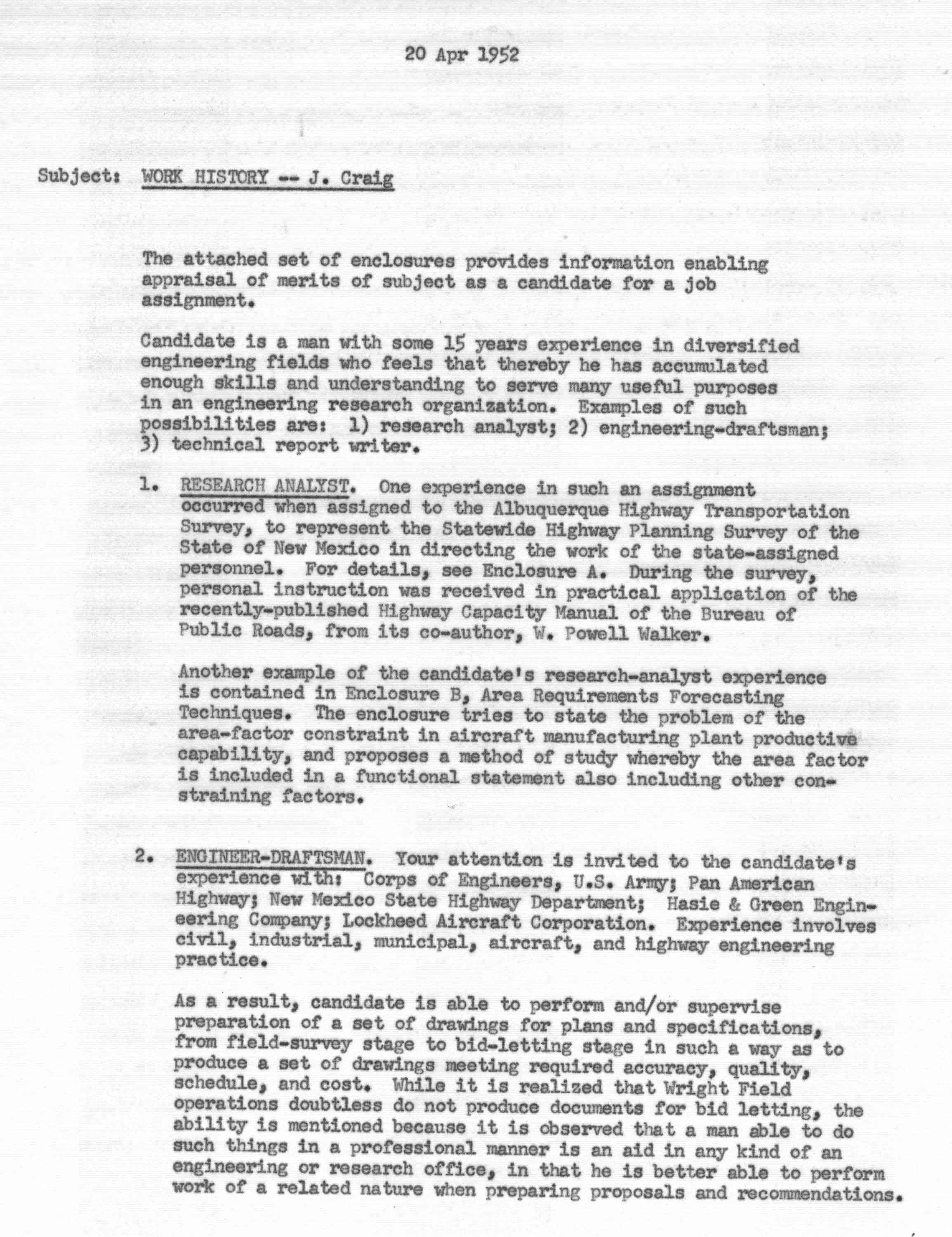 Jimmy was born James Craig Stumpf on May 13, 1907 in Uniontown, PA. It appears that his grandfather, John Rowe Stumpf had bought land in Lodi in 1907 with the intention of moving out here to grow grapes, but never did. In 1914, Jimmy’s immediate family of three -- himself, his mother Rachel Louise (Babinger) Stumpf, and his father Craig Edgar Stumpf – moved from Uniontown, PA to Lodi, CA, and then in August of 1923 made a second move to Glendale, CA, where Jimmy spent his senior year at Glendale High School. The moves were apparently prompted by Craig Edgar’s asthma, who had gone to Glendale earlier (in February of 1923) to look at the weather before moving the family there between Jimmy’s junior and senior years in high school. Unfortunately, Craig Edgar died in 1924, only a year after their move to Glendale, forcing Jimmy to withdraw his application to Stanford University. Jimmy lived with and supported his mother Rachel in the Glendale area for the next 14 years (until 1937), during several of which he delivered newspapers on his Indian motorcycle. Sometime between 1936 and 1937, Jimmy married Tedi (Henrietta Halliwell Strashun) and in January of 1937 they bought a house at 357 Mavis Drive in Glendale, CA. A good summary of Jimmy's educational experience is found under Jimmy Security Questionnaire below, and a good summary of his work experience is found under Work History and Work Experience.