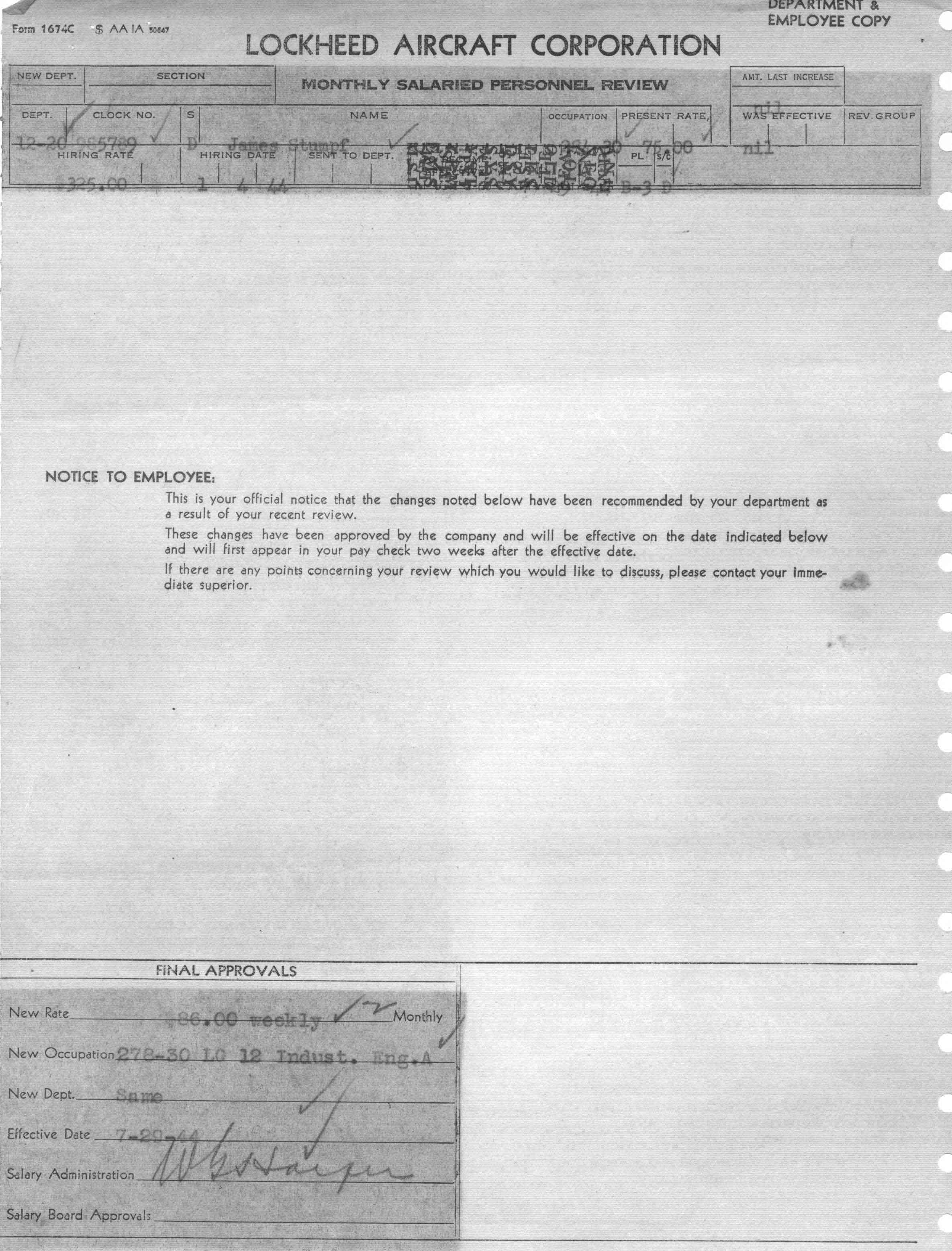 07/20/1944 -- Raise from Lockheed/Burbank During WWII