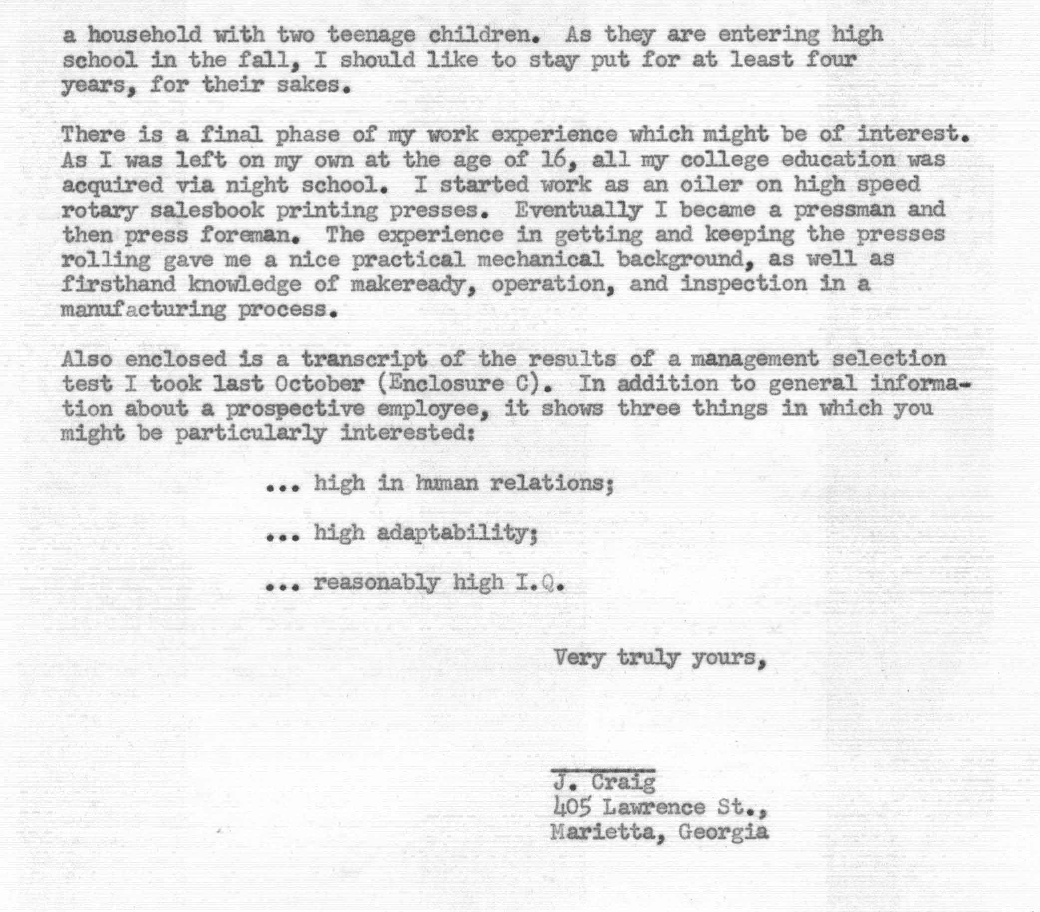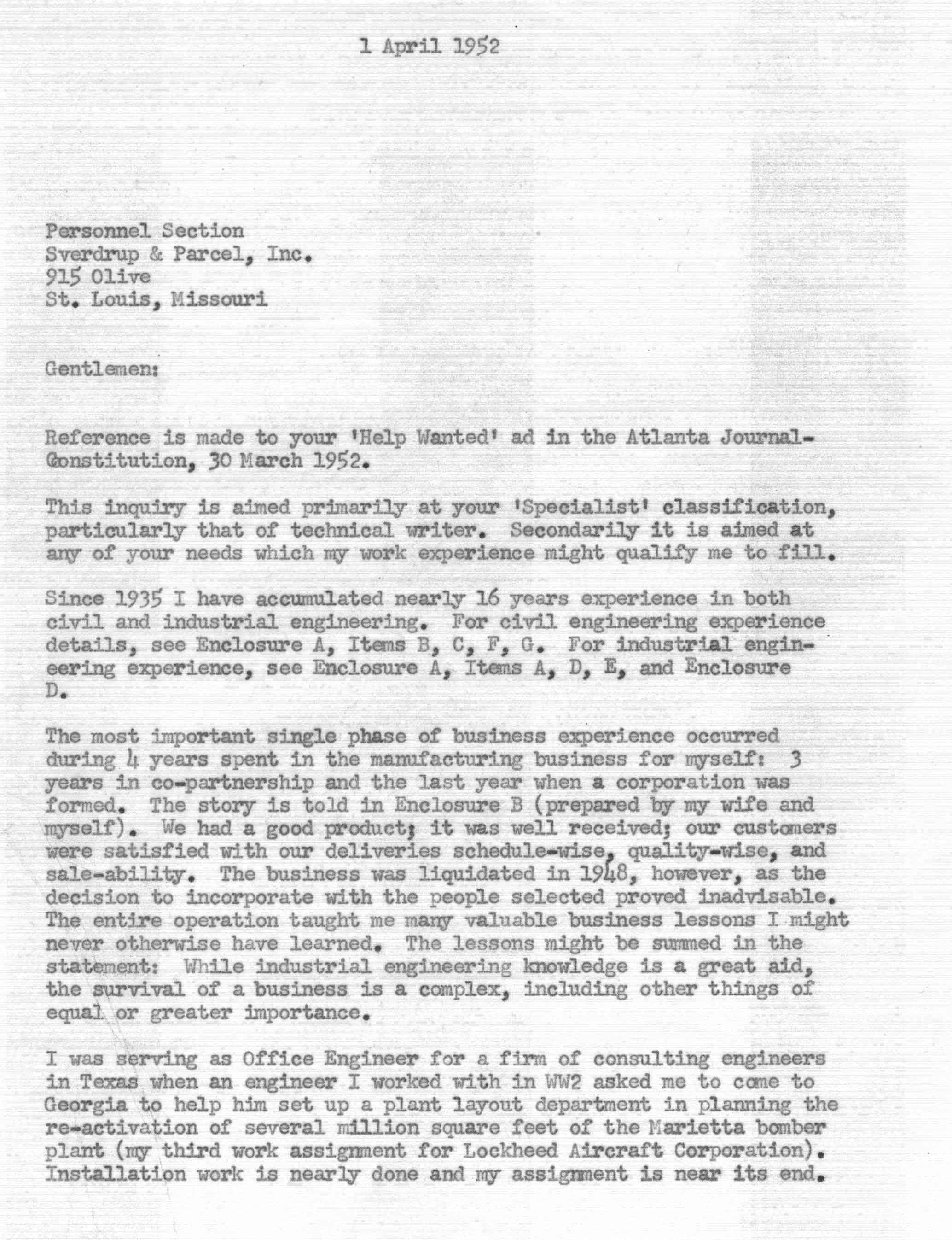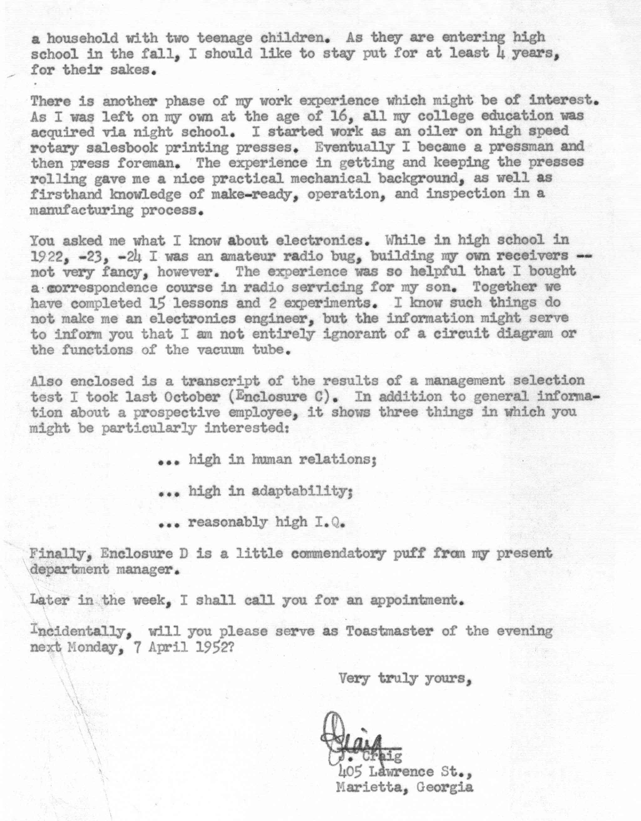 03/30/1952 -- Job Application to Atlanta Journal    1