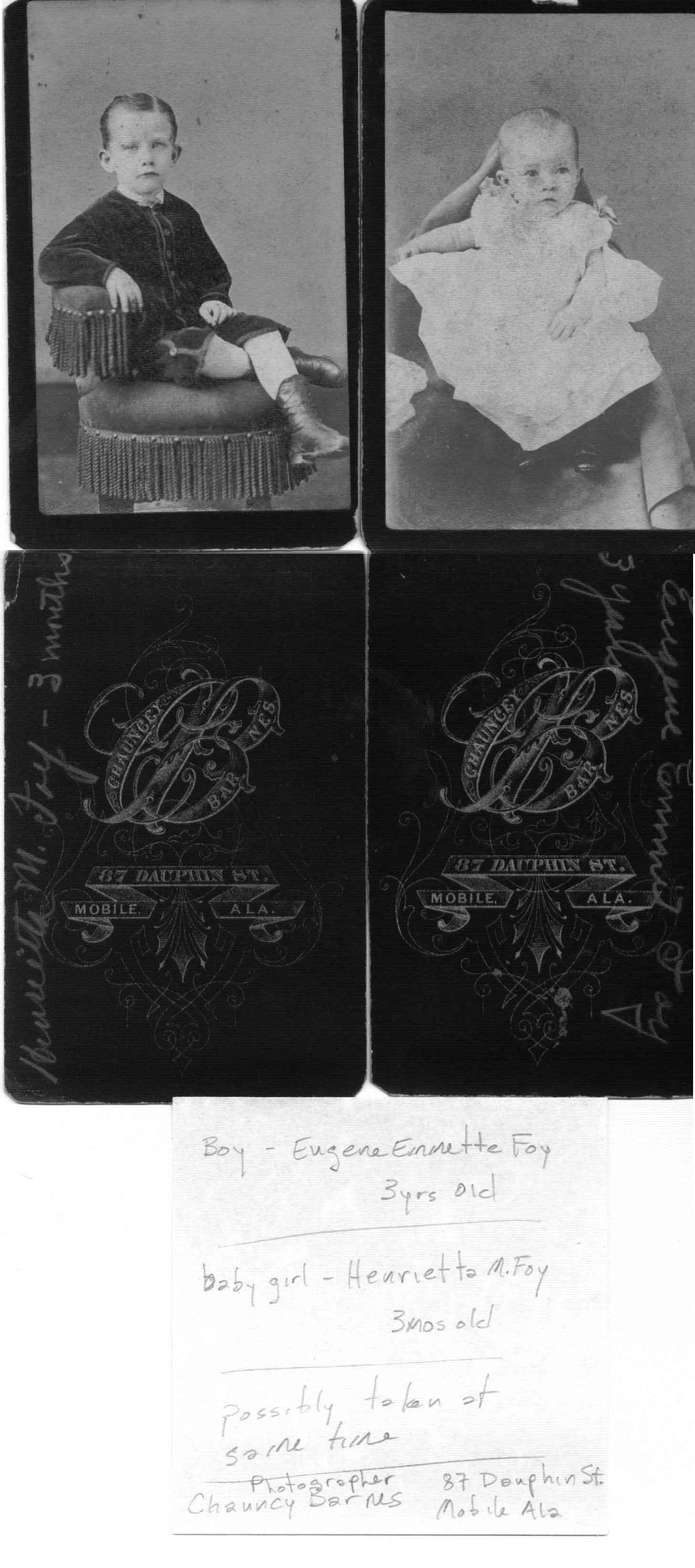 Eugene Emmit Foy (3 years old) and Henrietta M. Foy (3 months old)