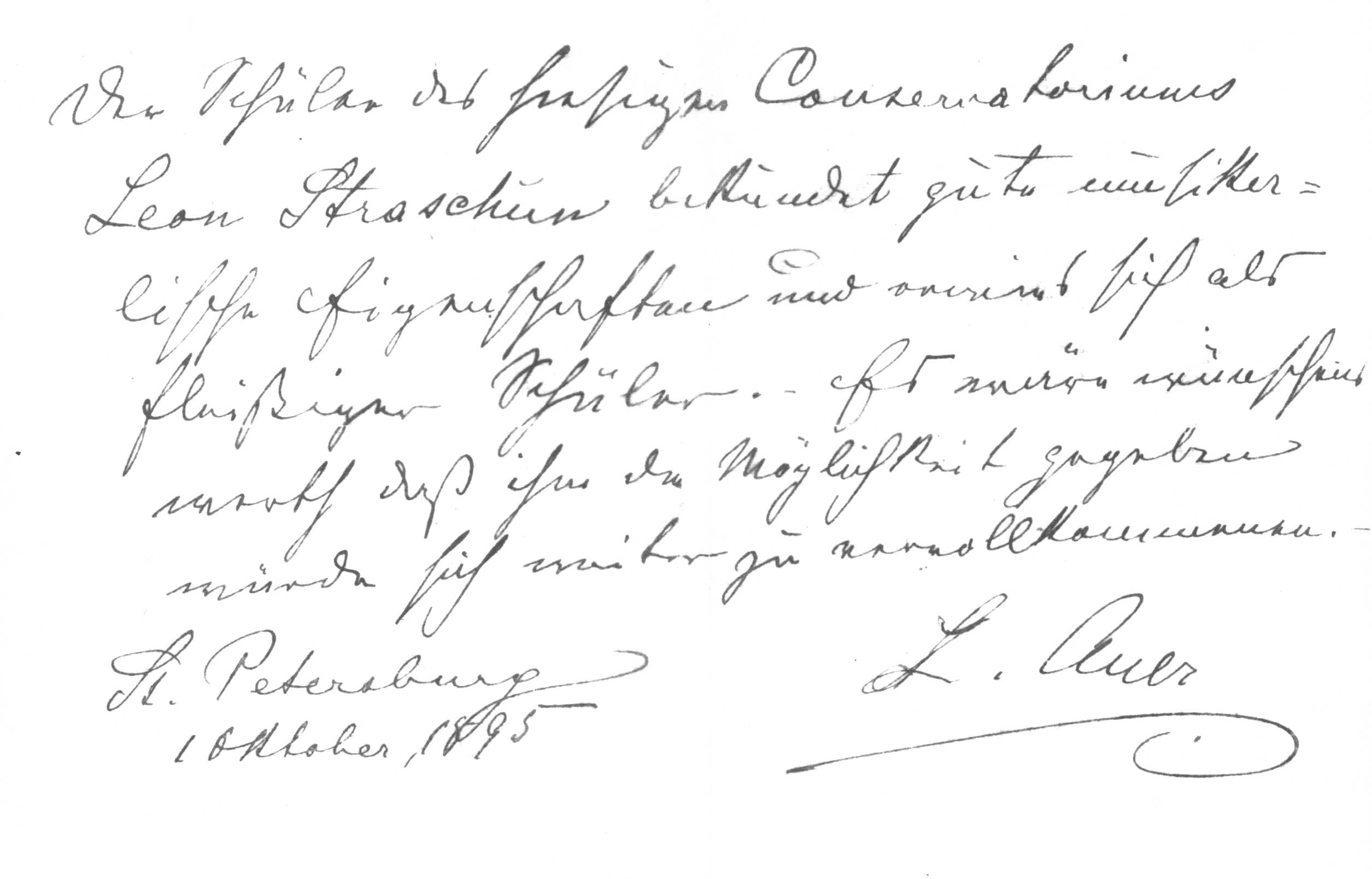 10/01/1895 -- Letter of Recommendation from Leopold Auer
