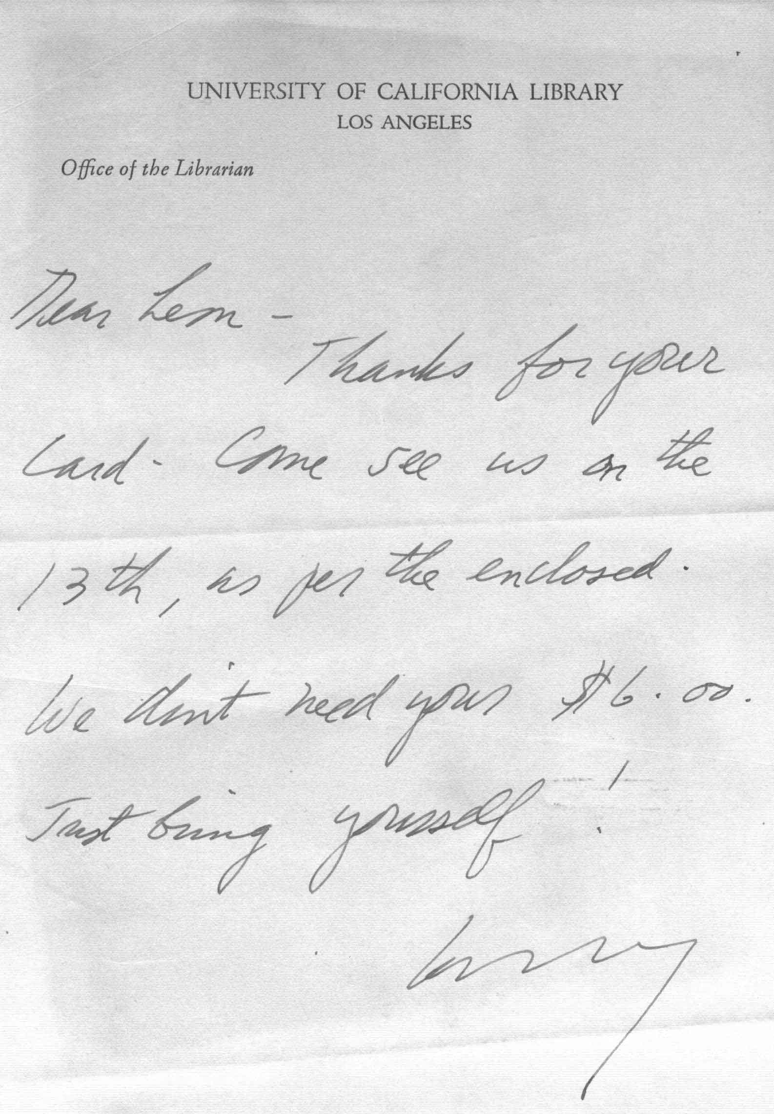 xx/xx/194x -- UCLA Letter